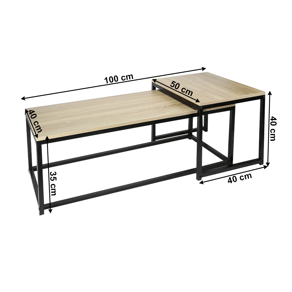 Set 2 konferenčních stolků, dub sonoma / černá, KASTLER NEW TYP 2