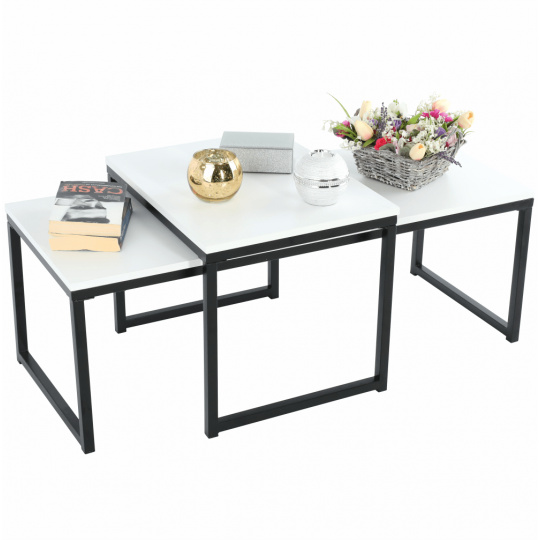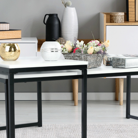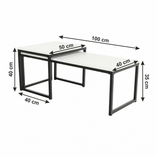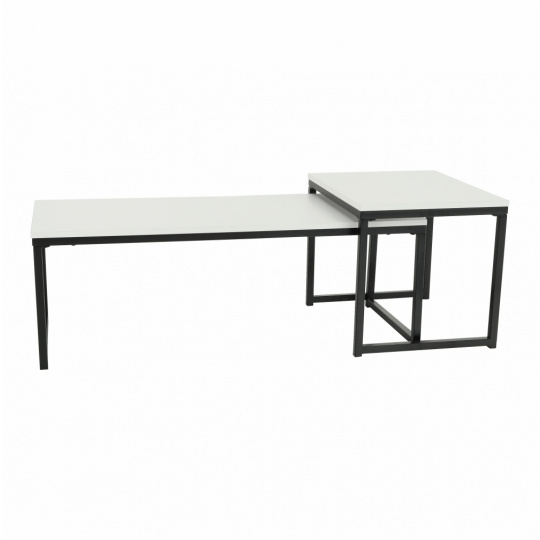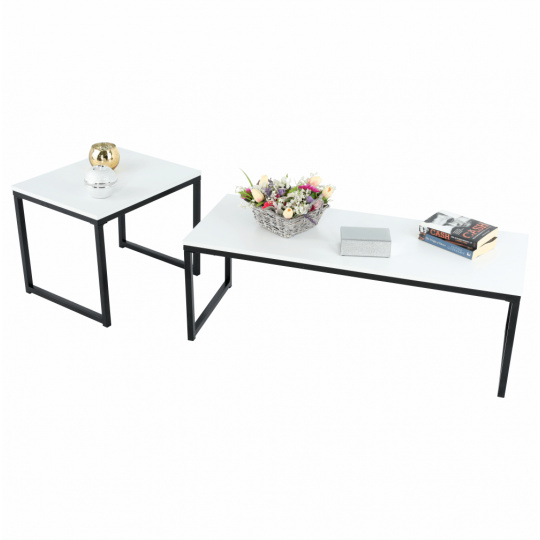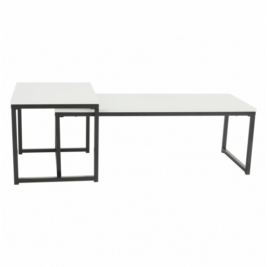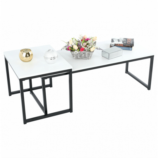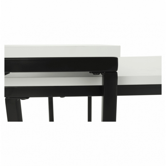 Set 2 konferenčních stolků, Kastler NEW TYP 2 Materiál: MDF / kov Barva: matná bílá / černá Rozměry větší stolek (ŠxHxV): 100x40x35 cm Rozměry menší stolek (ŠxHxV): 40x50x40 cm Tloušťka materiálu: 15 mm Dodávané v demontu.