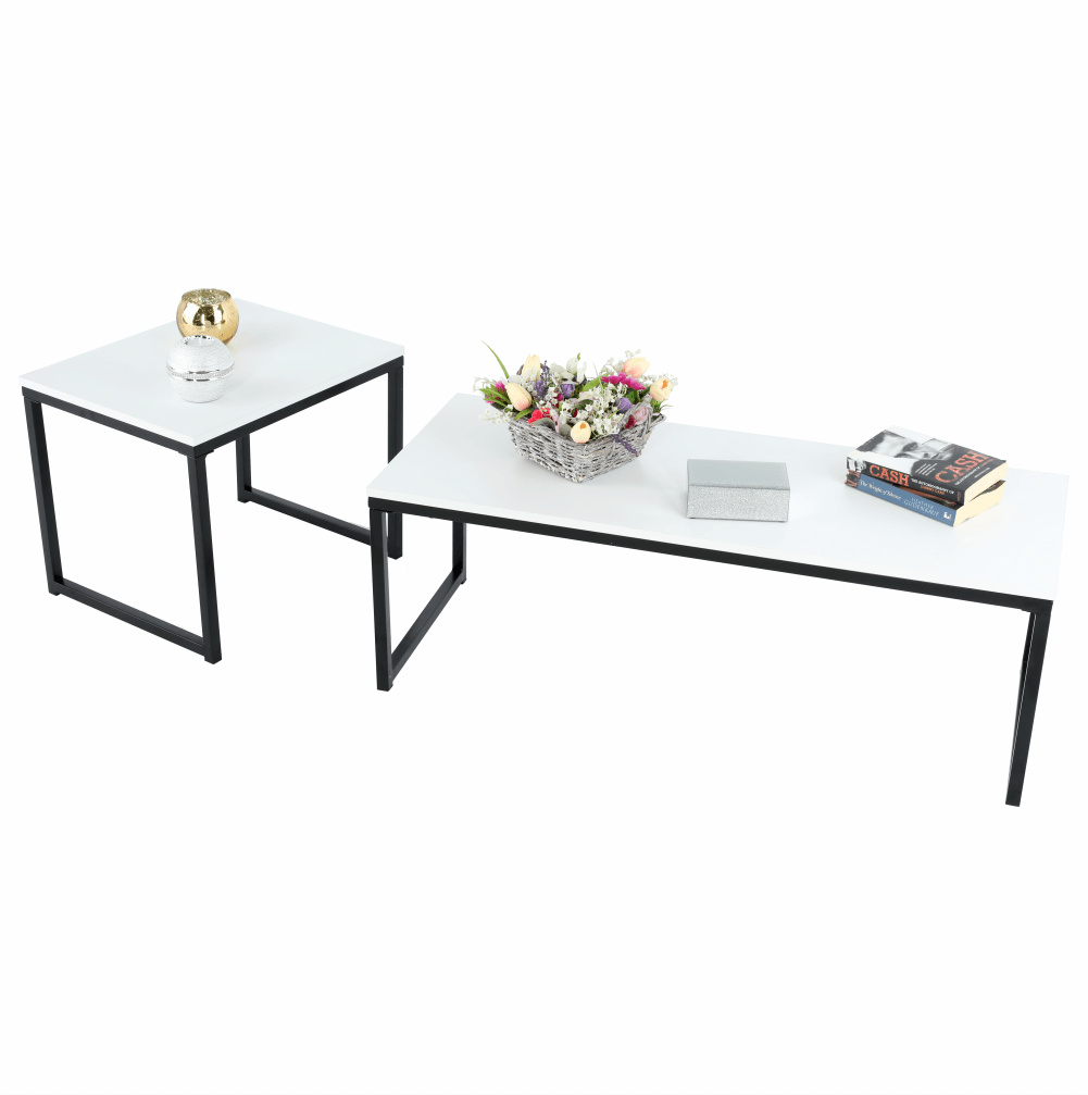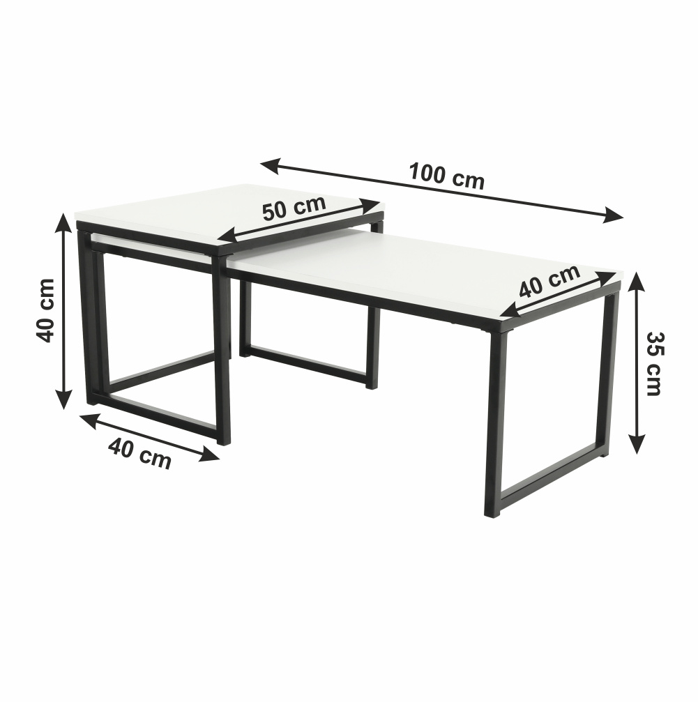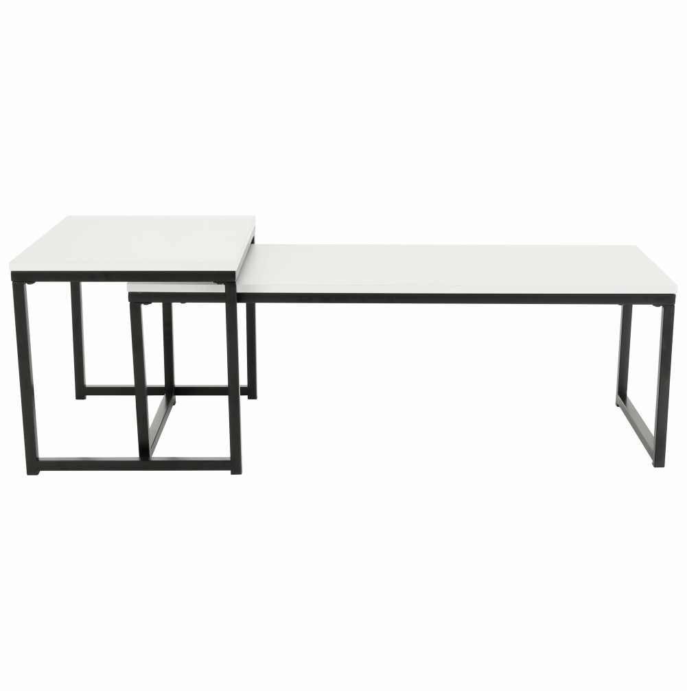 Set 2 konferenčních stolků, Kastler NEW TYP 2 Materiál: MDF / kov Barva: matná bílá / černá Rozměry větší stolek (ŠxHxV): 100x40x35 cm Rozměry menší stolek (ŠxHxV): 40x50x40 cm Tloušťka materiálu: 15 mm Dodávané v demontu.