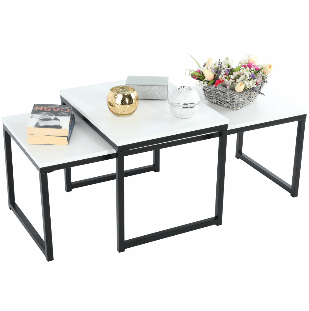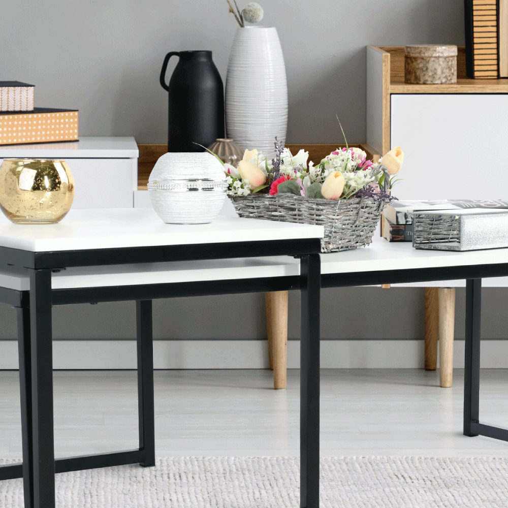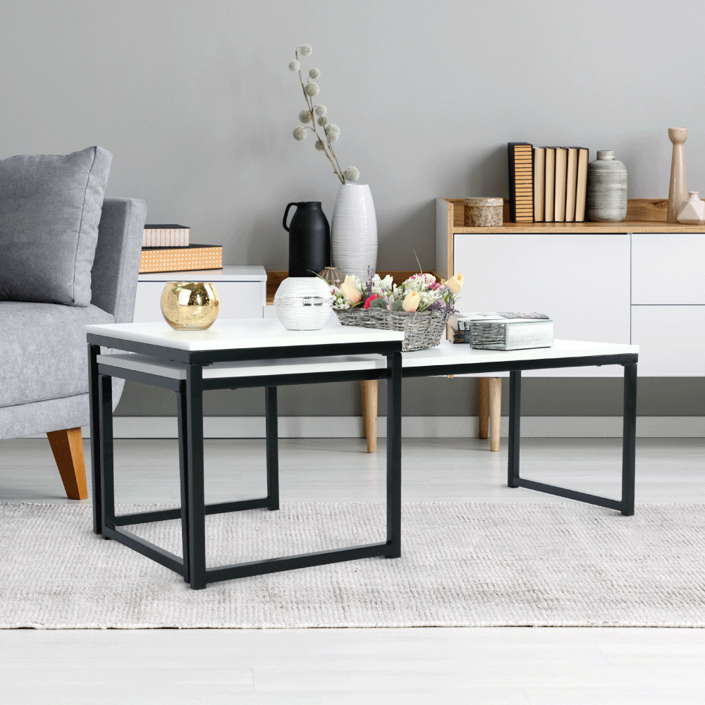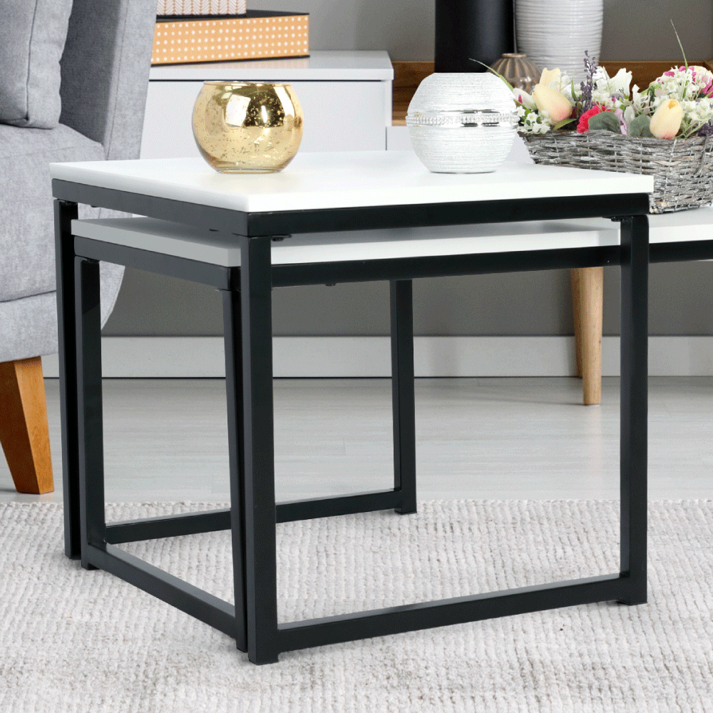 Set 2 konferenčních stolků, matná bílá / černá, KASTLER NEW TYP 2
