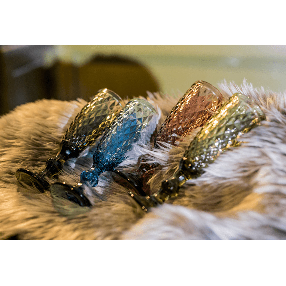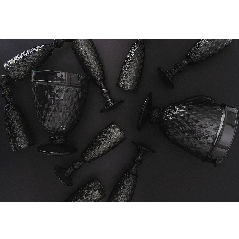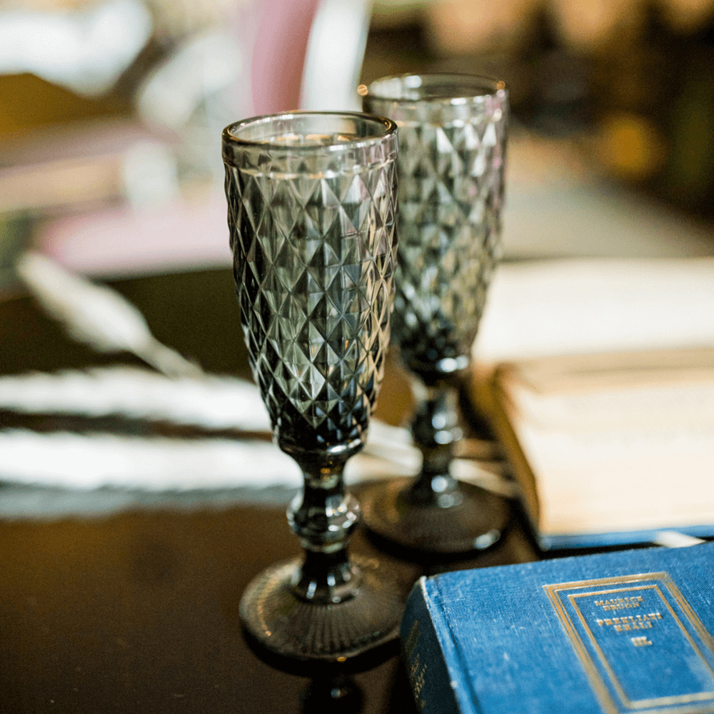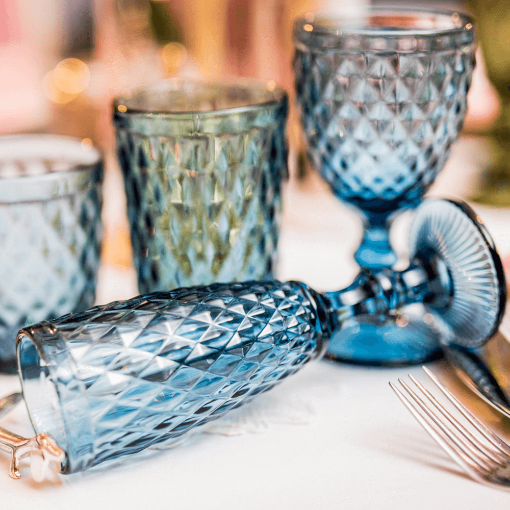 Set 4 ks sklenic Materiál: sklo Barva: šedá / zelená / růžová / modrá Pohár (priemerxV): 7x20 cm Objem poháru: 150 ml Sklenice na šampaňské Vhodné do myčky nádobí Nedoporučuje se použití v mikrovlnné troubě
