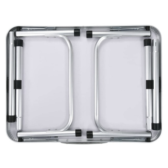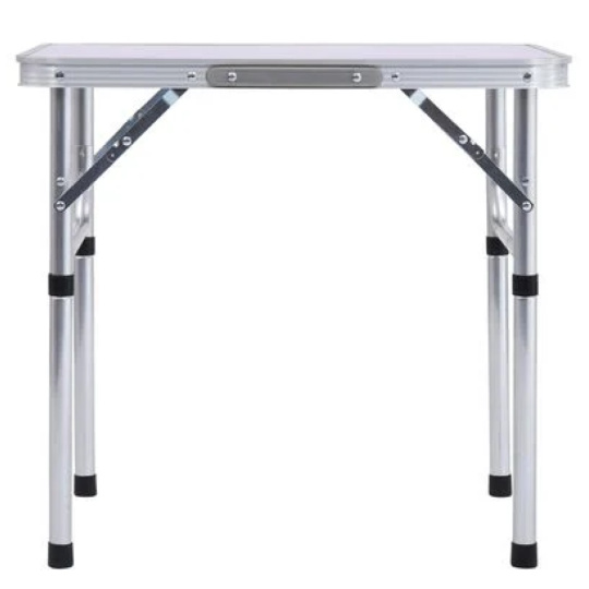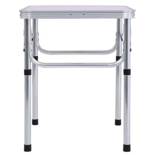 Materiál: hliník/MDF Barva: šedá Rozměry rozložený stůl (ŠxHxV): 60x45x55 cm Stůl je výškově nastavitelný Výši lze nastavit ve dvou úrovních Nastavitelná výška: 25/55 cm Možnost složit Rozměry složený stůl (ŠxHxV): 60x45x3 cm Lehký a praktický Skládací Přenosný Jednoduchá manipulace a skladování Ideální pro kempování a pikniky Odolný vůči povětrnostním podmínkám Vhodný pro 2 osoby Hmotnost: 2,6 kg Nosnost: 30 kg Dodáváno v montě