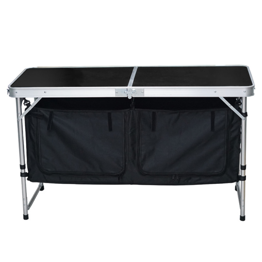 Materiál: hliník/MDF/látka Barva: šedá/černá Rozměry rozložený stůl (ŠxHxV): 120x47x54 cm Stůl je výškově nastavitelný Výši lze nastavit ve třech úrovních Nastavitelná výška: 54/60/70 cm Možnost složit do praktického boxu Rozměry složený stůl (ŠxHxV): 60x47x10 cm Dodáván s organizérem Rozměry organizéru (ŠxHxV): 105x40x40 cm 2x přihrádka na zip Rozměry přihrádky (ŠxV): 46x33 cm Možnost složit organizér Lehký a praktický Skládací Přenosný Jednoduchá manipulace a skladování Ideální pro kempování a pikniky Odolný vůči povětrnostním podmínkám Vhodný pro 4 osoby Hmotnost: 6,5 kg Nosnost: 30 kg Dodáváno v montě