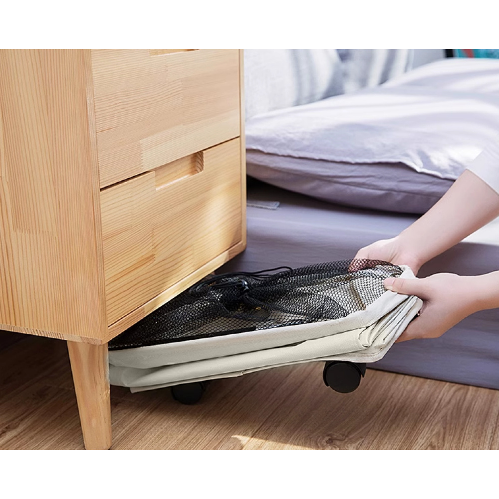 Materiál: látka Barva: béžová Rozměry (ŠxHxV): 38,5x19x58 cm Nosnost: 8 kg Hmotnost: 0,68 kg Objem: 42 l Látka je z voděodolného materiálu Otírejte vlhkým hadříkem Nežehlete Nebělte Nečistěte chemicky Nesušte v sušičce Praktický úložný prostor 4 kolečka 1 kolečko je s brzdou Skládací S praktickým černým ouškem Dodáváno v monte