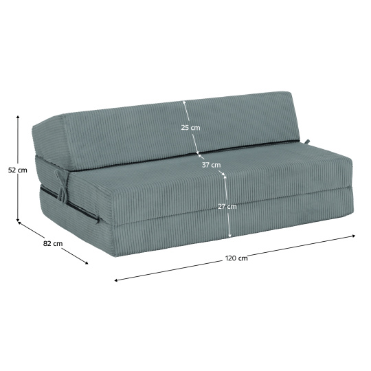 Materiál: polyuretanová pěna/látka Lincoln 72 Oděruodolnost textilie podle testu Martindale: 100 000 oděrů Barva: mentolová Rozměry (ŠxHxV): 120x82x52 cm Rozkládací Plocha na spaní (ŠxD): 120x200 cm Výška matrace ve složeném stavu: 27 cm Výška matrace v rozloženém stavu: 13 cm Nosnost na osobu: 120 kg Tvrdost matrace: T25 středně tvrdá pěna Křeslo Skládací matrace Profilovaná opěrka s jemným sklonem Se zipem Snímatelný potah Pratelný při 30 stupních Dodáváno v monte