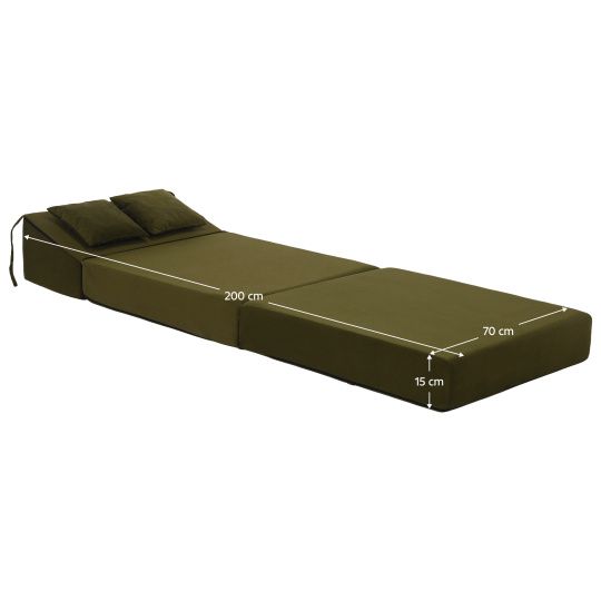 Skládací matrace/křeslo, 2v1, olivová, PELOS