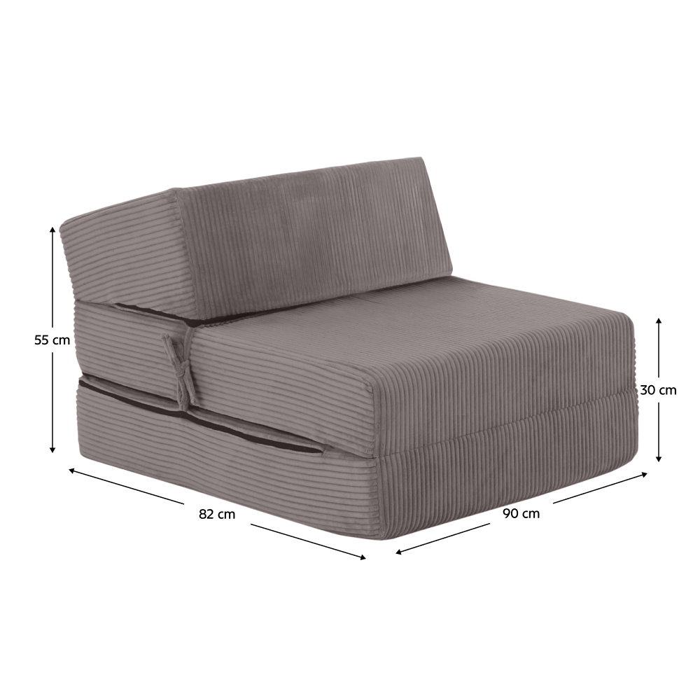 Materiál: polyuretanová pěna/látka Lincoln 86 Oděruodolnost textilie podle testu Martindale: 100 000 oděrů Barva: šedá Rozměry (ŠxHxV): 90x82x55 cm Rozkládací Plocha na spaní (ŠxD): 90x200 cm Výška matrace ve složeném stavu: 30 cm Výška matrace v rozloženém stavu: 15 cm Nosnost na osobu: 120 kg Tvrdost matrace: T25 středně tvrdá pěna Křeslo Skládací matrace Profilovaná opěrka s jemným sklonem Se zipem Snímatelný potah Pratelný při 30 stupních Dodáváno v monte