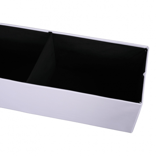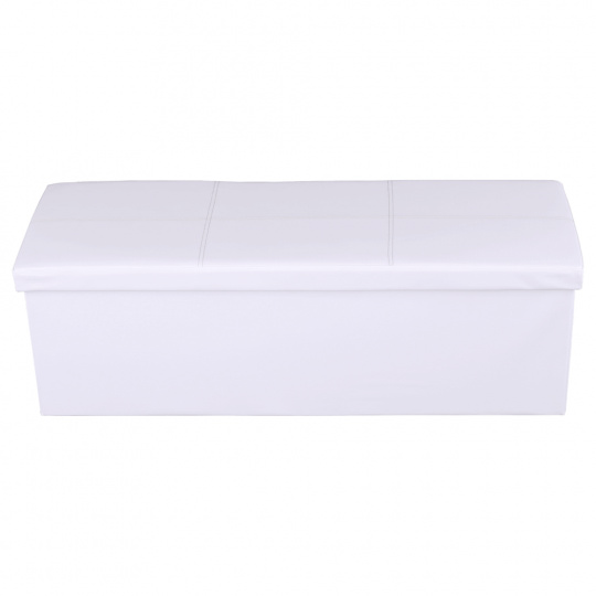 Skládací taburet s úložným prostorem ZAMIRA Oděruodolnost textilie podle testu Martindale: 87 000 oděrek Barva: bílá Rozměry (Š x V x H): 114 x 38 x 38 cm Nosnost: 100 kg