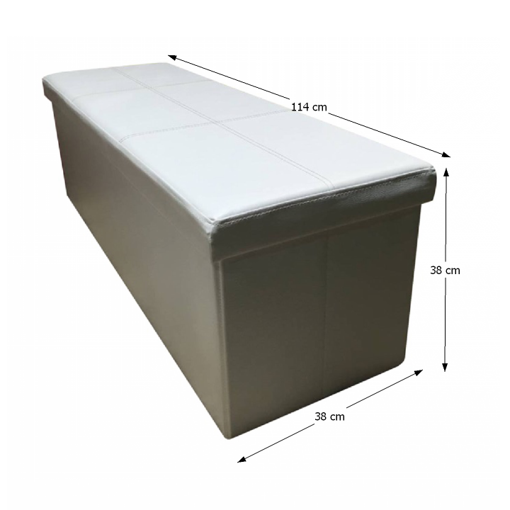Skládací taburet s úložným prostorem ZAMIRA Oděruodolnost textilie podle testu Martindale: 87 000 oděrek Barva: bílá Rozměry (Š x V x H): 114 x 38 x 38 cm Nosnost: 100 kg