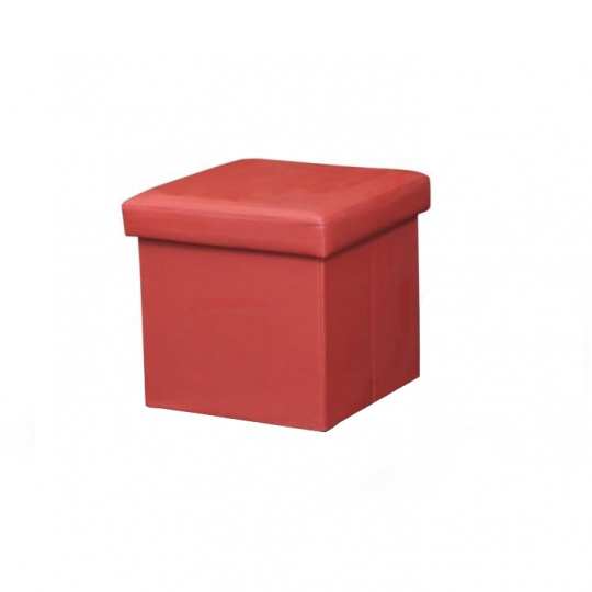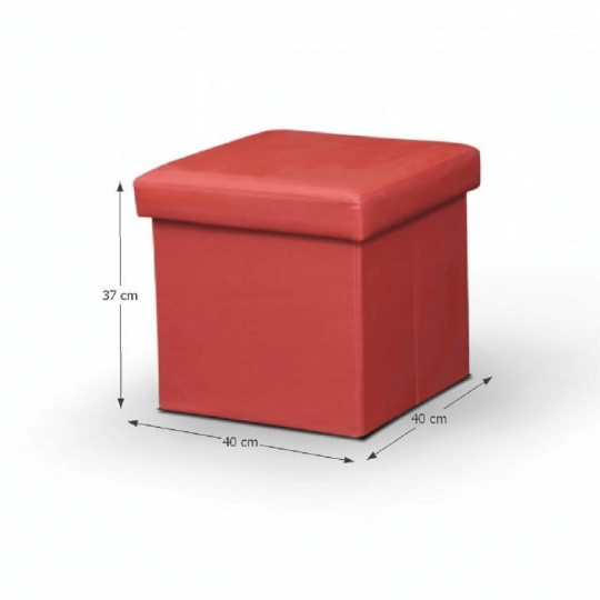 Skládací taburet s úložným prostorem TELA NEW, Materiál: ekokůže, Oděruodolnost textilie podle testu Martindale: 100 000 oděrek Barevné provedení: bílá, červená, černá, tmavohnědá, šedá nebo světlehnědá. Rozměry (ŠxHxV): 40x40x37 cm. Nosnost: 90 kg