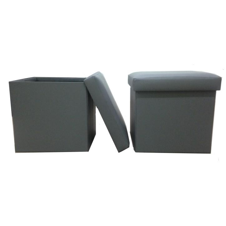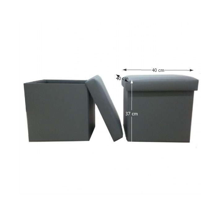 Skládací taburet s úložným prostorem TELA NEW, Materiál: ekokůže, Oděruodolnost textilie podle testu Martindale: 100 000 oděrek Barevné provedení: šedá Rozměry (ŠxHxV): 40x40x37 cm. Nosnost: 90 kg