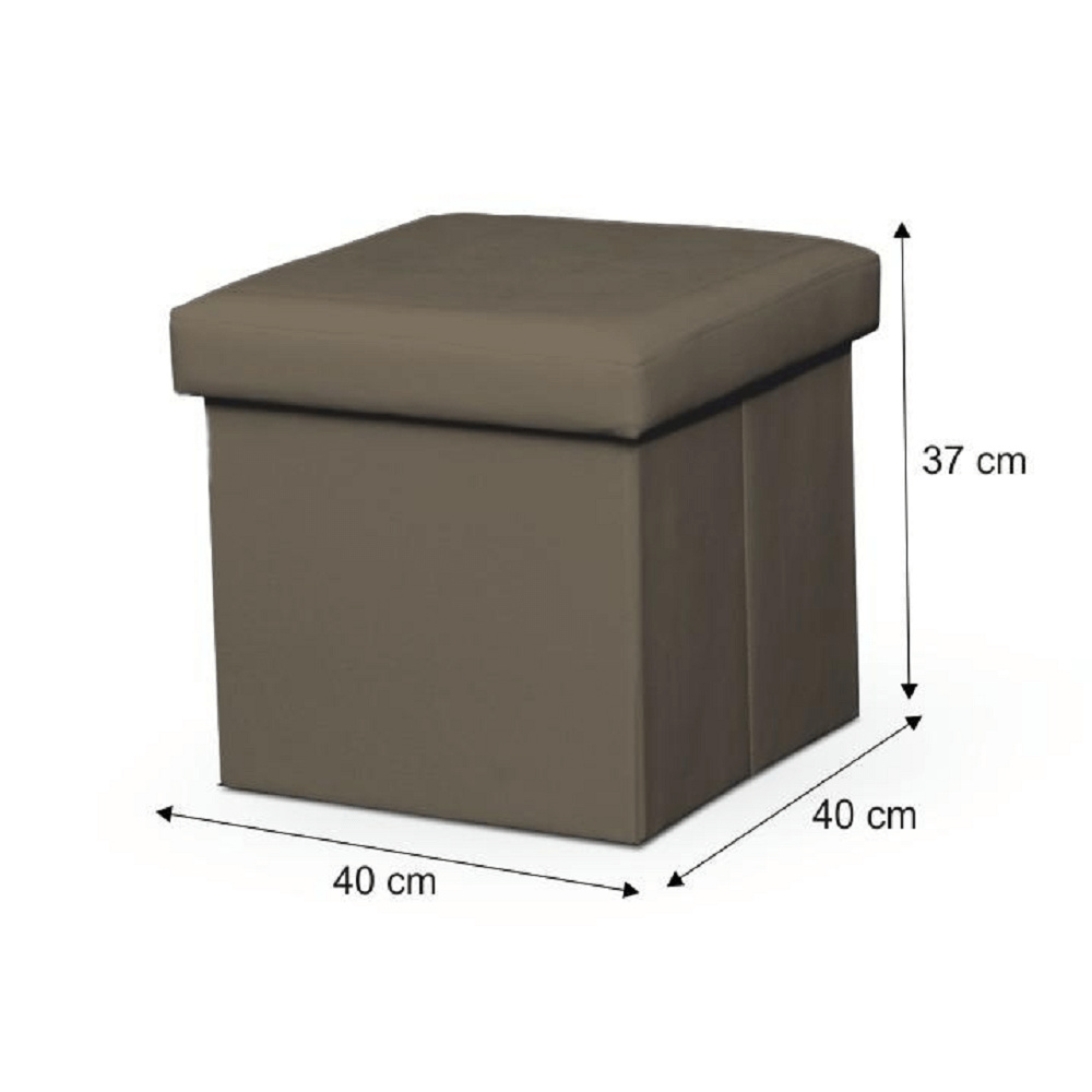Skládací taburet s úložným prostorem TELA NEW, Materiál: ekokůže, Oděruodolnost textilie podle testu Martindale: 100 000 oděrek Barevné provedení: světlehnědá Rozměry (ŠxHxV): 40x40x37 cm. Nosnost: 90 kg