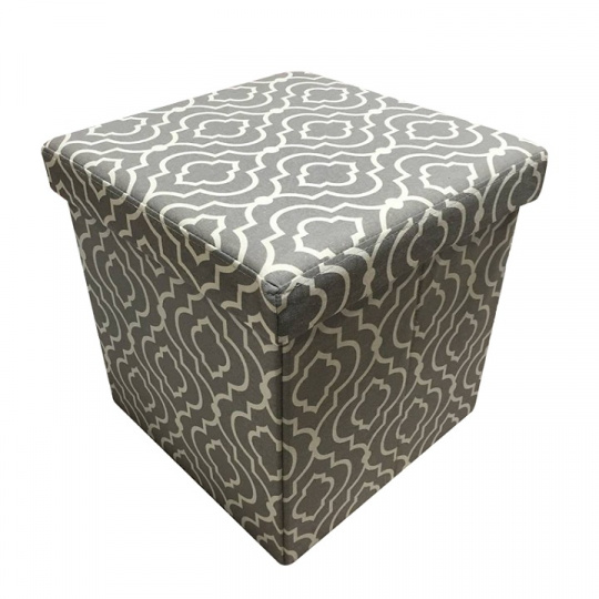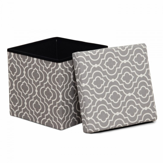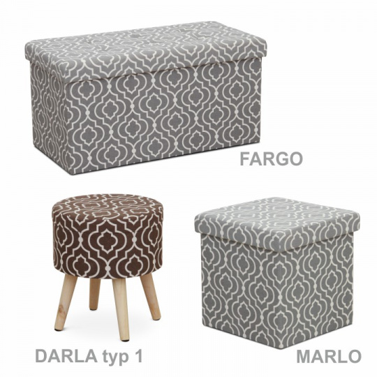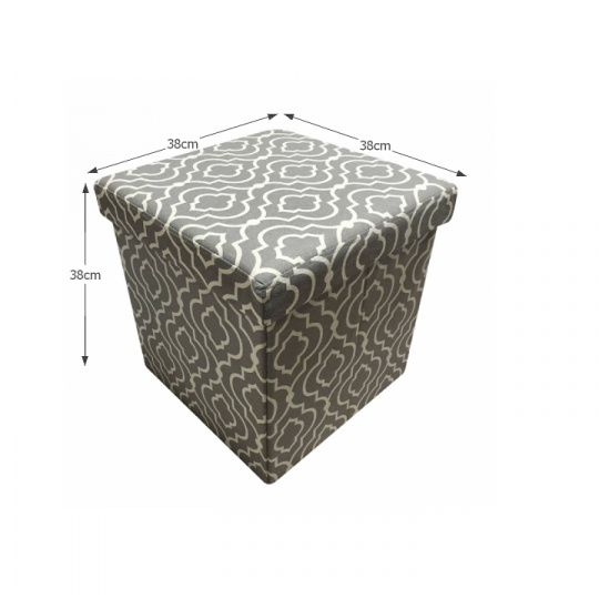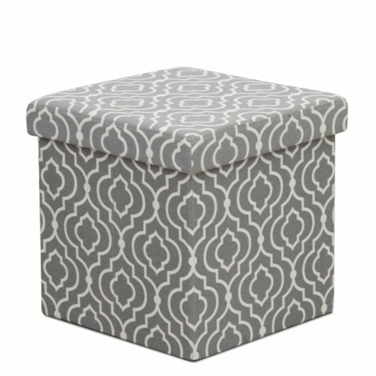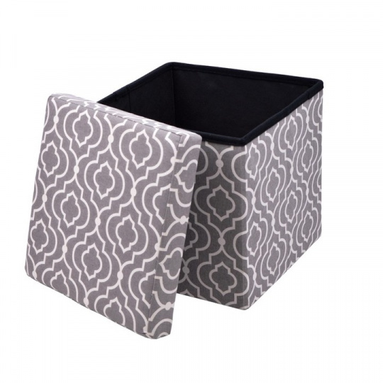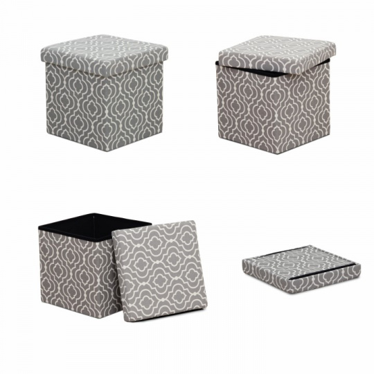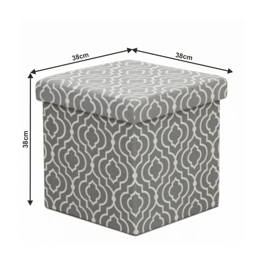Skládací taburet MARLO s úložným prostorem v provedení látka vzor. Oděruodolnost textilie podle testu Martindale: 90 000 oděrek Rozměry (ŠxHxV): 38x38x38 cm Nosnost: 100 kg