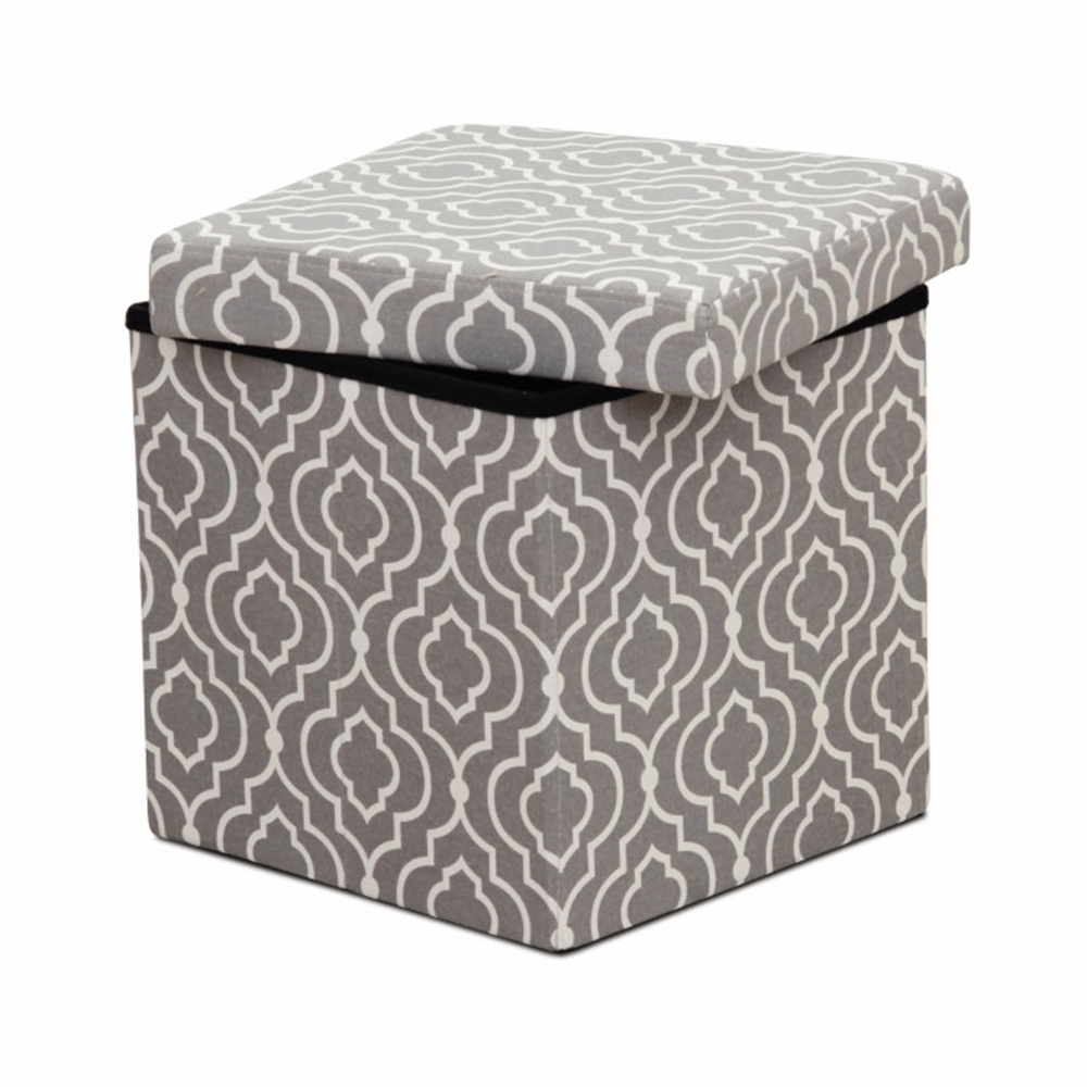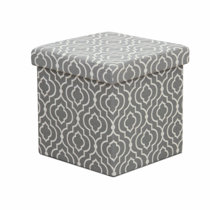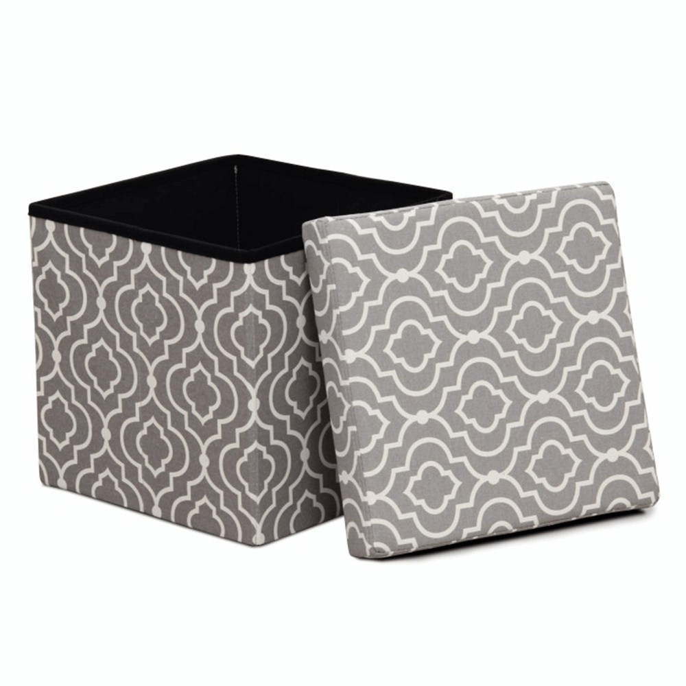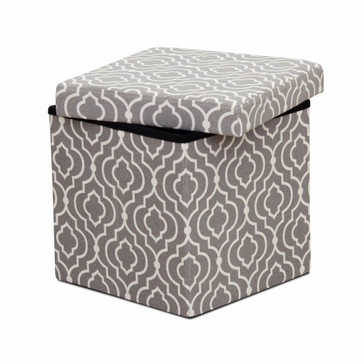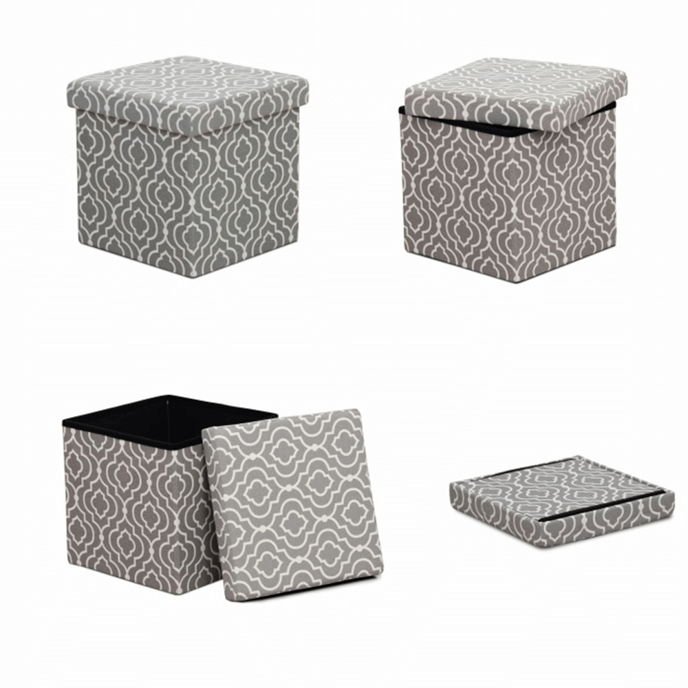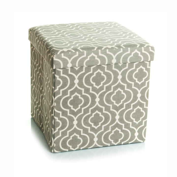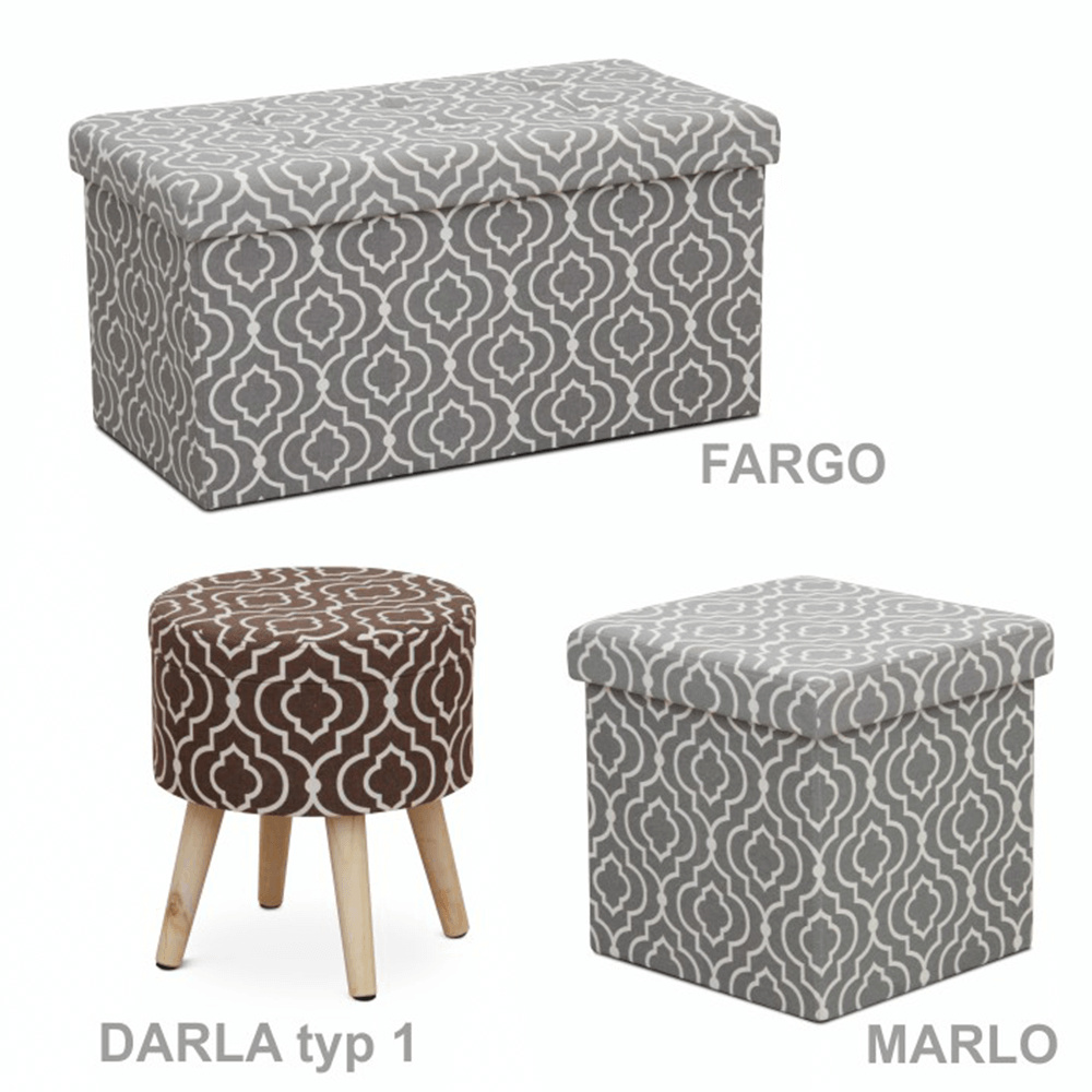 Skládací taburet MARLO s úložným prostorem v provedení látka vzor. Oděruodolnost textilie podle testu Martindale: 90 000 oděrek Rozměry (ŠxHxV): 38x38x38 cm Nosnost: 100 kg