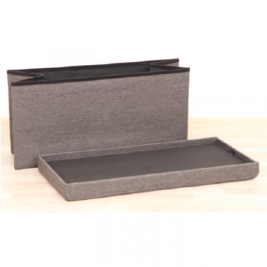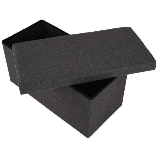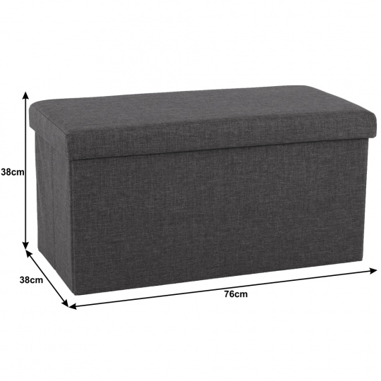 Skládací taburet s úložným prostorem ORELIA. Oděruodolnost textilie podle testu Martindale: 90 000 oděrek Barva: šedá. Rozměry (Š x V x H): 76 x 38 x 38 cm. Hloubka sedu: 38 cm. Výška sedu: 38 cm. Nosnost: 100 kg