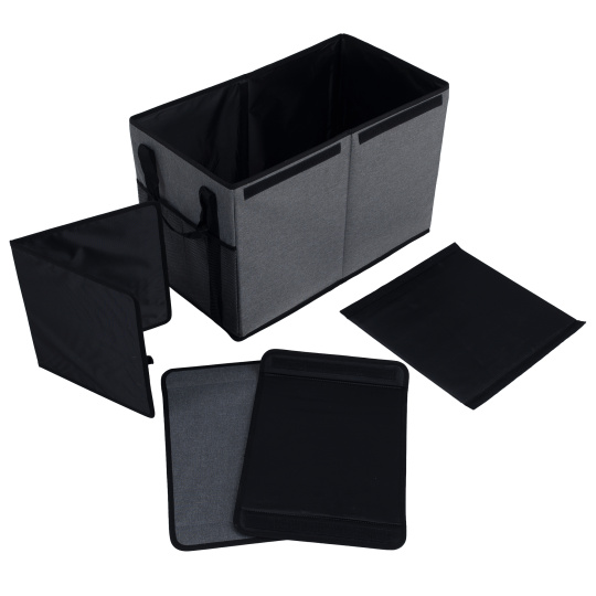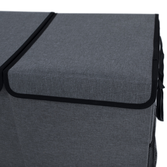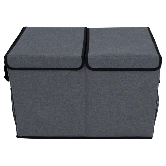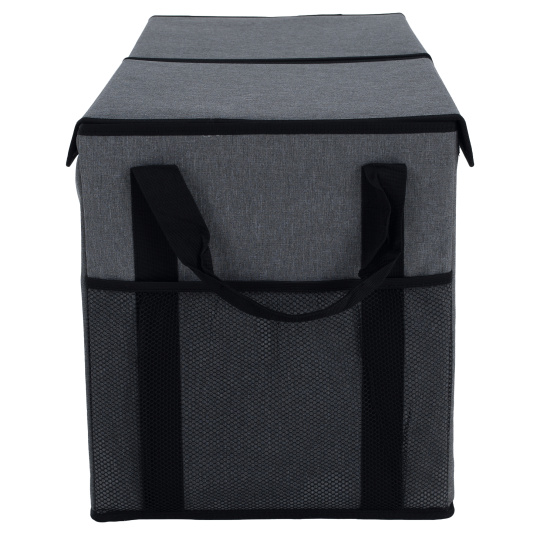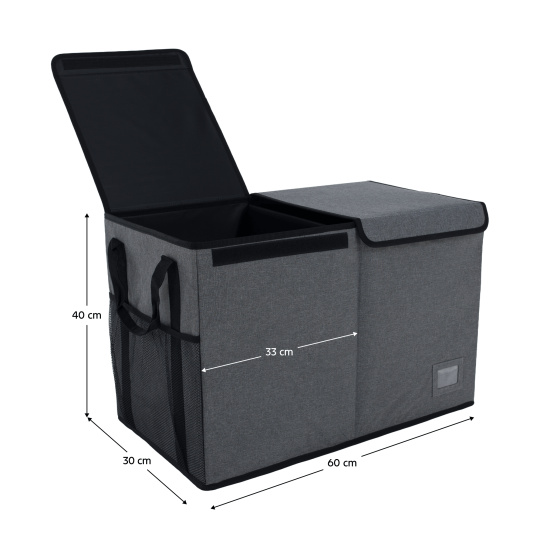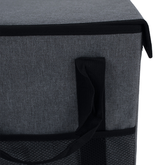 Materiál: látka Barva: šedá/černá Rozměry (ŠxHxV): 60x33x40 cm Všestranné využití Přenosný S oušky Skládací Jednoduché uskladnění Šetření místa Síťové kapsy na bocích Uzavíratelný Suchý zip pro zavírání Udržuje pořádek Pomáhá při organizaci Praktický Neprat, nebělit, nežehlit, nečistit chemicky, nesušit v sušičce