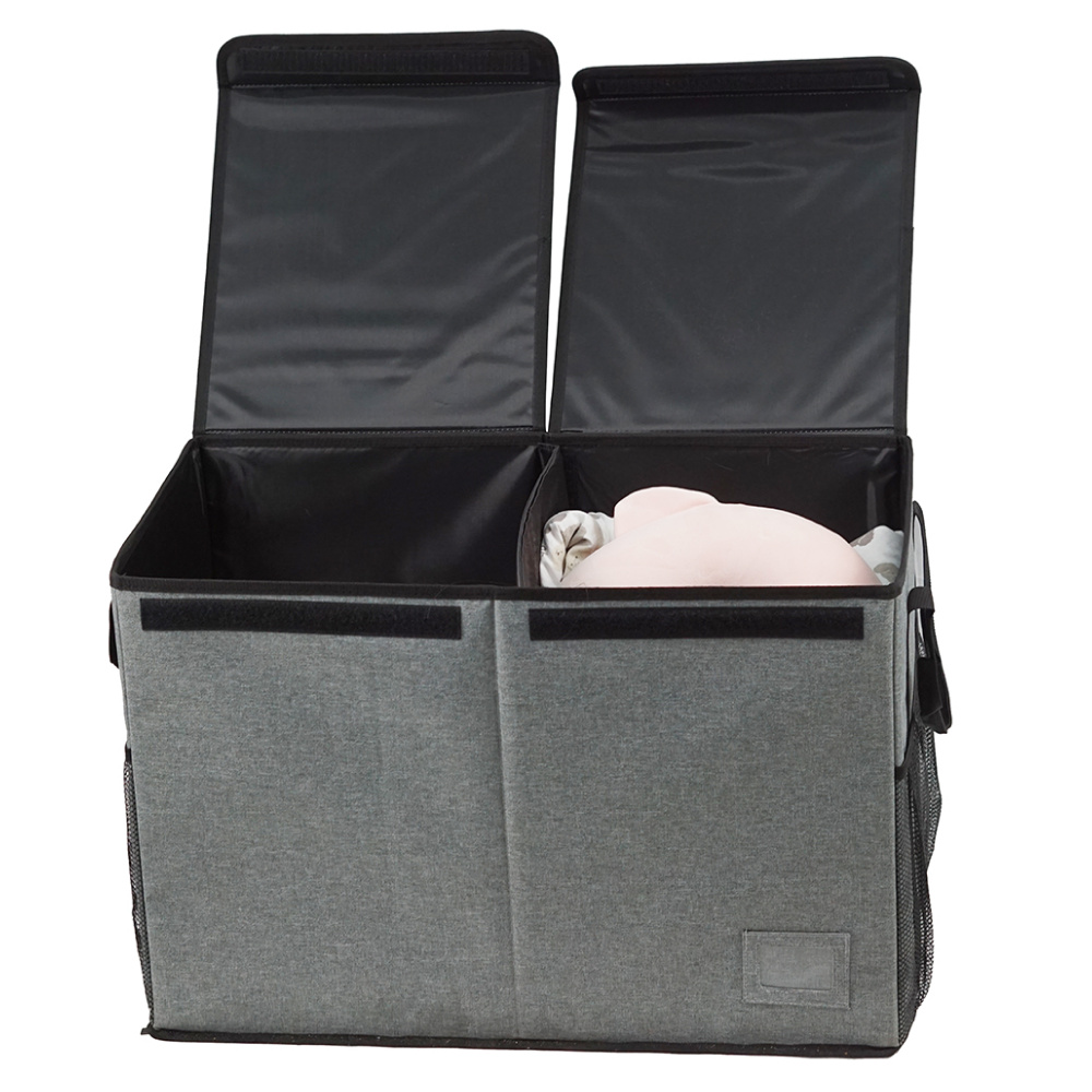 Materiál: látka Barva: šedá/černá Rozměry (ŠxHxV): 60x33x40 cm Všestranné využití Přenosný S oušky Skládací Jednoduché uskladnění Šetření místa Síťové kapsy na bocích Uzavíratelný Suchý zip pro zavírání Udržuje pořádek Pomáhá při organizaci Praktický Neprat, nebělit, nežehlit, nečistit chemicky, nesušit v sušičce