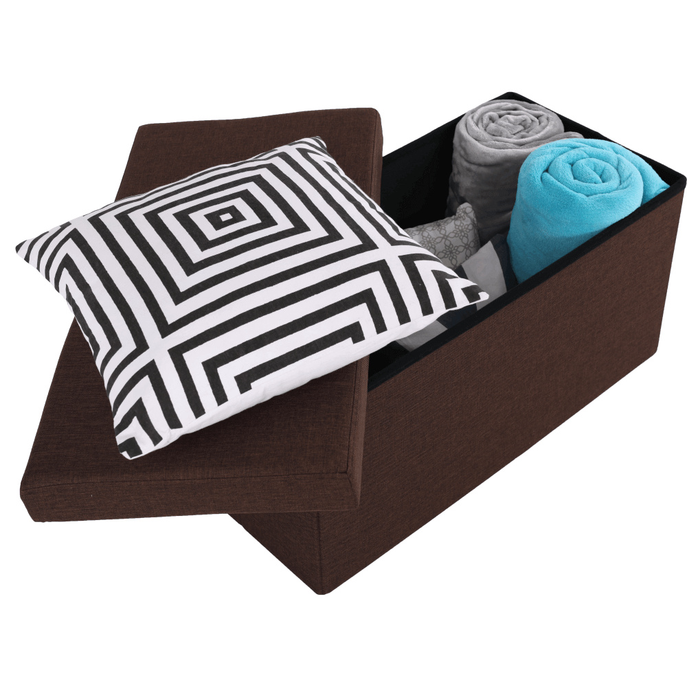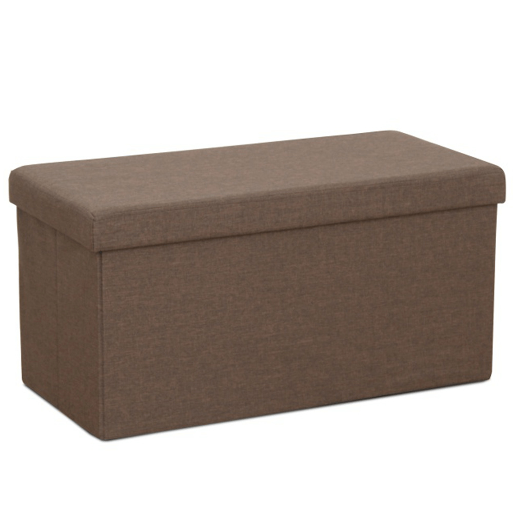 Skládatelný taburet s úložným prostorem ORELIA Oděruodolnost textilie podle testu Martindale: 90 000 oděrek Barva: hnědá Rozměry (Š x V x H): 76 x 38 x 38 cm Hloubka sedáku: 38 cm Výška sedáku: 38 cm Nosnost: 100 kg
