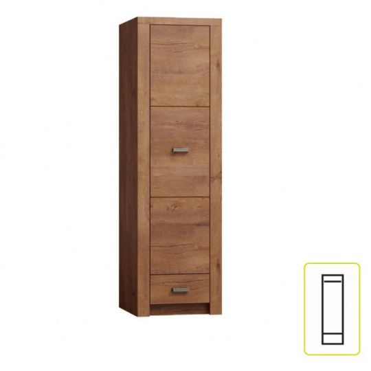 Skříň 01 z luxusního sektorového nábytku Korpus hrubý až 48 mm.Tloušťka materiálu zbývající části: 16 mm, úchytky kovové Materiál DTD laminovaná, ABS hrany, Barevné provedení: jasan světlý Rozměry ŠxHxV: 96x58x192 cm. Dodávané v demontu. Hmotnost: 77.5kg