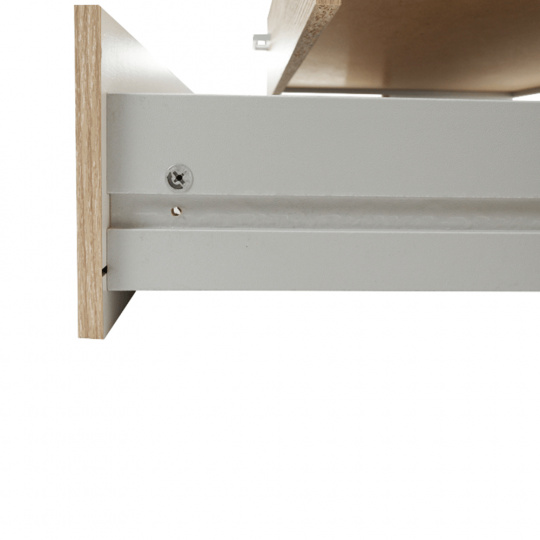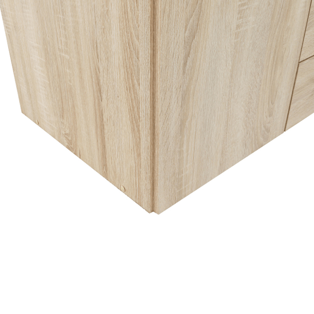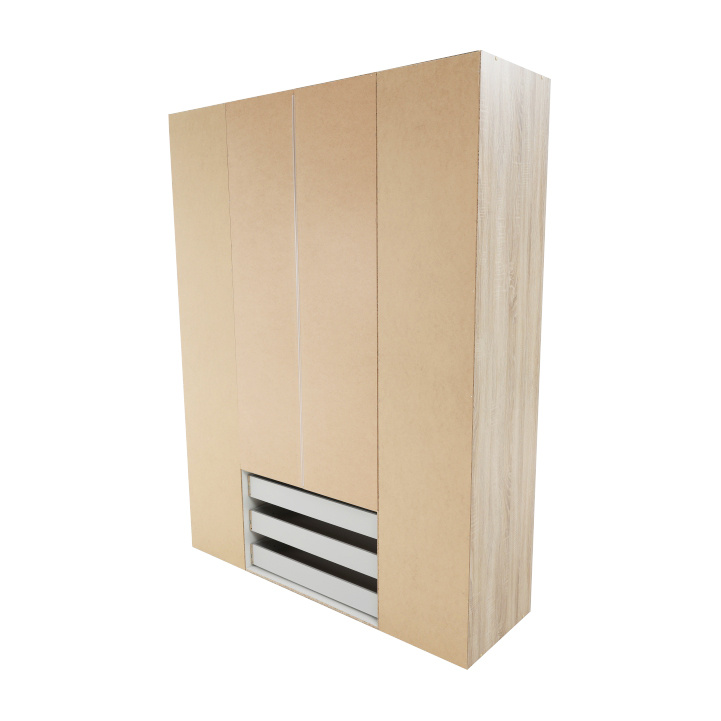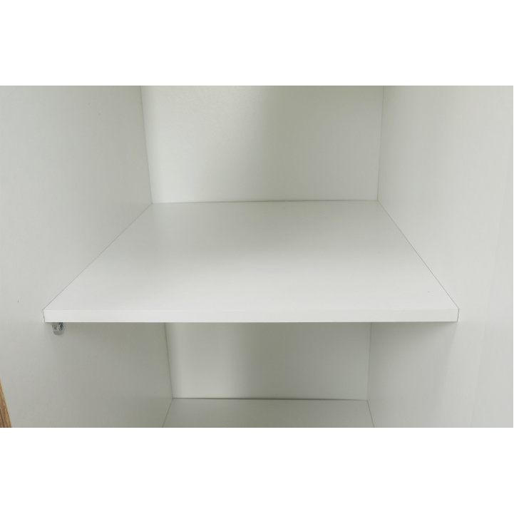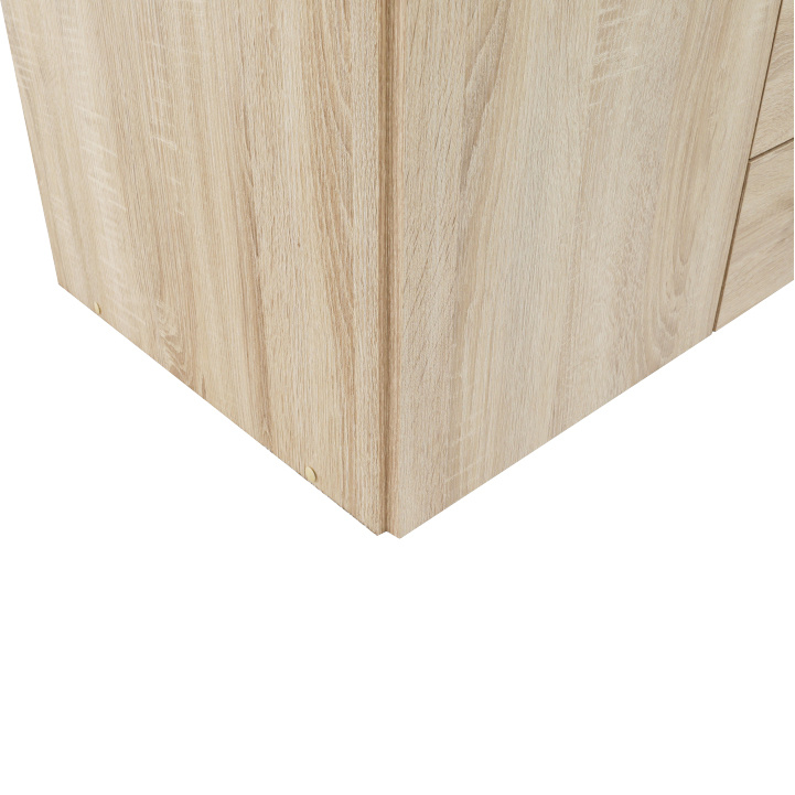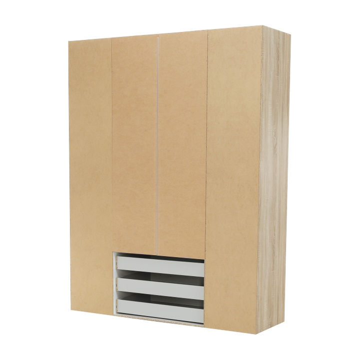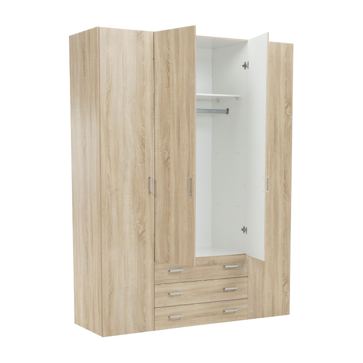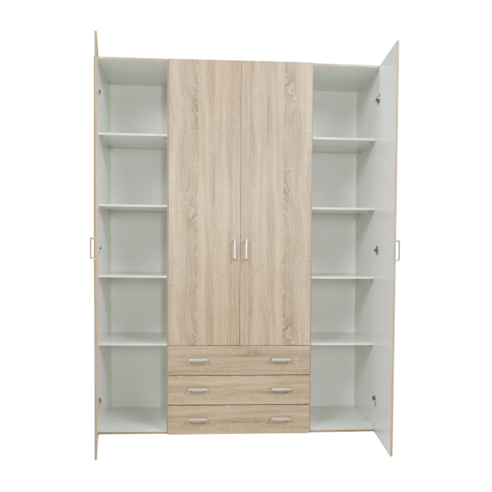 4 - dveřová skříň s věšákovou tyčí a policí, boční skříňky regálové, 3 šuplíky, GWEN 70429 Barva: dub sonoma Materiál: DTD fóliovaná Rozměry (ŠxHxV): 154,8x49,5x200,4 cm Výška od země po věšákovou tyč: 148 cm Tloušťka materiálu: 12 mm Dodávané v demontu.