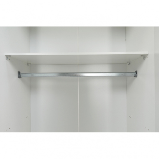 3-dveřová skříň GWEN 70427 Materiál: DTD fóliovaná Provedení: bílá extra vysoký lesk Rozměry (ŠxHxV): 115,8x49,5x200,4 cm Výška od země po věšákovou tyč: 148 cm Tloušťka materiálu: 12 mm Věšáková část Tři šuplíky Poličky Dodávané v demontu Hmotnost: 67kg