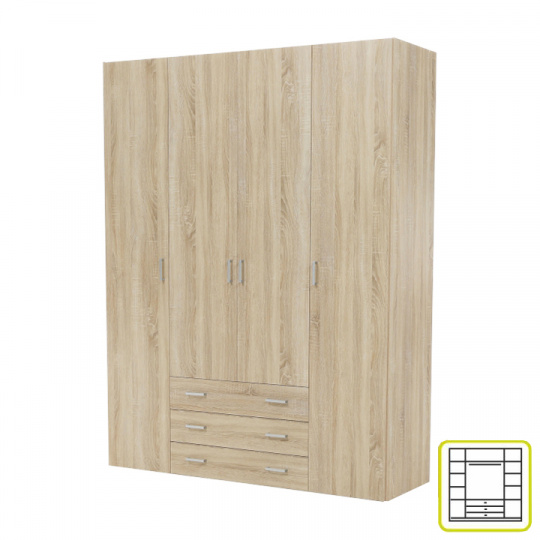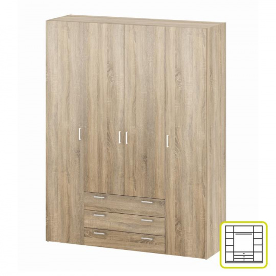 Skříň, 4 - dveřová, dub sonoma, GWEN 70429