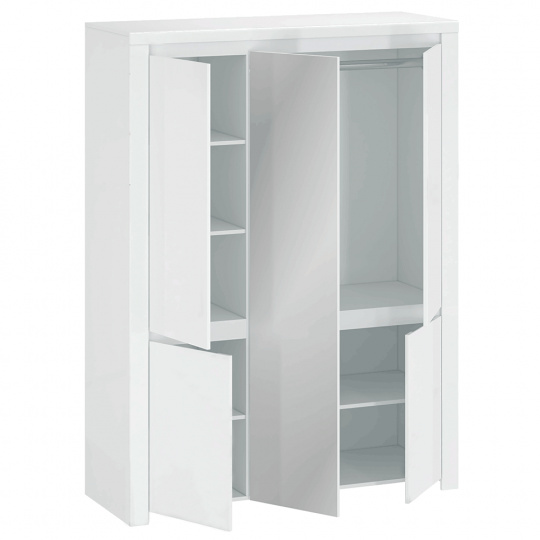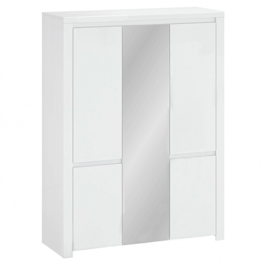 Skříň 5D se zrcadlem, bílý lesk, LINDY