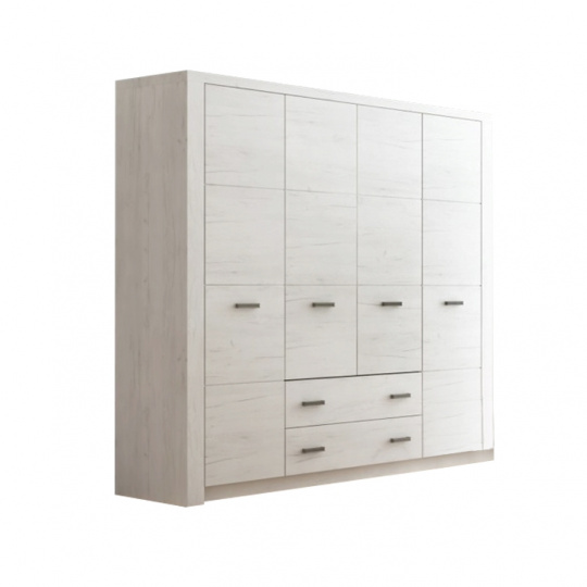 Skříň 01 z luxusního sektorového nábytku Korpus hrubý až 48 mm Tloušťka materiálu zbývající části: 16 mm úchytky kovové Materiál DTD laminovaná, ABS hrany, Barevné provedení: jasan bílý Rozměry ŠxHxV: 96x58x192 cm. Dodávané v demontu. Hmotnost: 77.5kg