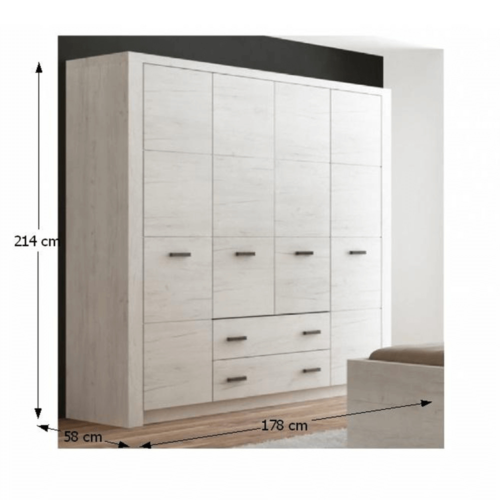 Skříň 01 z luxusního sektorového nábytku Korpus hrubý až 48 mm Tloušťka materiálu zbývající části: 16 mm úchytky kovové Materiál DTD laminovaná, ABS hrany, Barevné provedení: jasan bílý Rozměry ŠxHxV: 96x58x192 cm. Dodávané v demontu. Hmotnost: 77.5kg