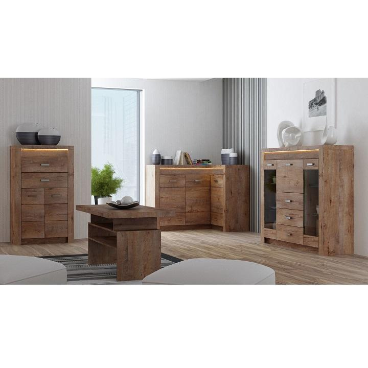 Komoda 10 z luxusního sektorového nábytku Korpus hrubý až 48 mm,Tloušťka materiálu zbývající části: 16 mm, úchytky kovové Materiál DTD laminovaná, ABS hrany, barevné provedení: jasan světlý, Rozměry ŠxHxV: 96x42x72,5 cm. Možnost dokoupení LED osvětlení v ceně 890 Kč. Dodávané v demontu. Hmotnost: 31.5kg