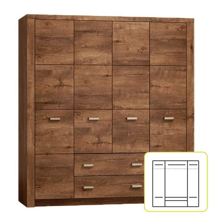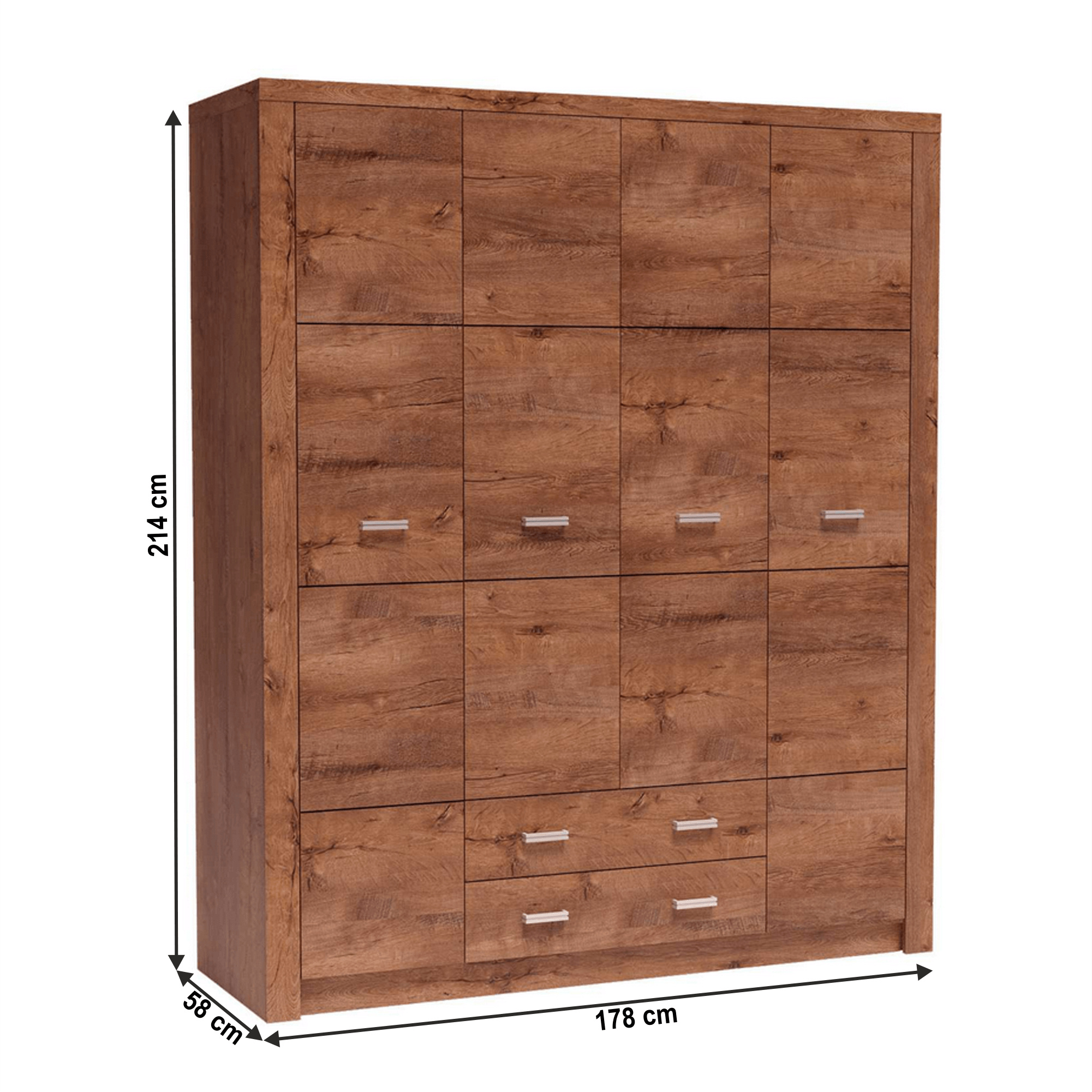 Skříň INFINITY 1-18 Materiál / provedení: DTD laminovaná / ABS hrany, jasan tmavý Rozměry (ŠxHxV): 178x58x214 cm Tloušťka materiálu: 48 mm Tloušťka materiálu zbývající části: 16 mm Možnost dokoupení ostatních částí sestavy Dodávané v demontu Hmotnost: 170kg