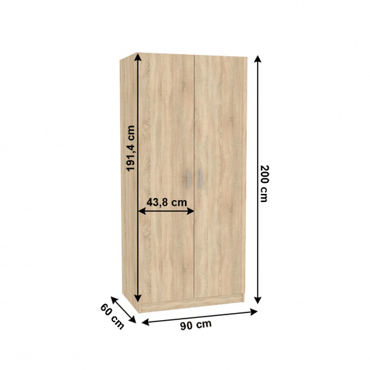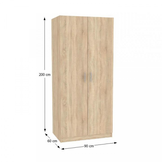 Skříň INVITA Typ 4 Materiál: DTD laminovaná Provedení: dub sonoma Rozměry (ŠxHxV): 90x60x200 cm Tloušťka materiálu: 16 mm Šířka dvířek: 43,8 cm Výška dvířek: 191,4 cm Dvoudveřová Věšáková Kvalitní slovenský výrobek Dodávané v demontu