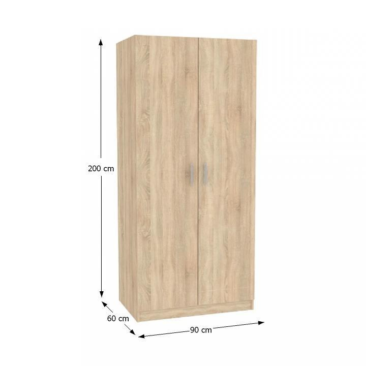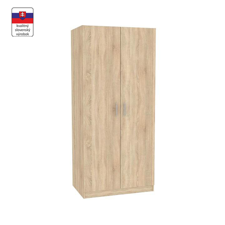 Skříň INVITA Typ 4 Materiál: DTD laminovaná Provedení: dub sonoma Rozměry (ŠxHxV): 90x60x200 cm Tloušťka materiálu: 16 mm Šířka dvířek: 43,8 cm Výška dvířek: 191,4 cm Dvoudveřová Věšáková Kvalitní slovenský výrobek Dodávané v demontu