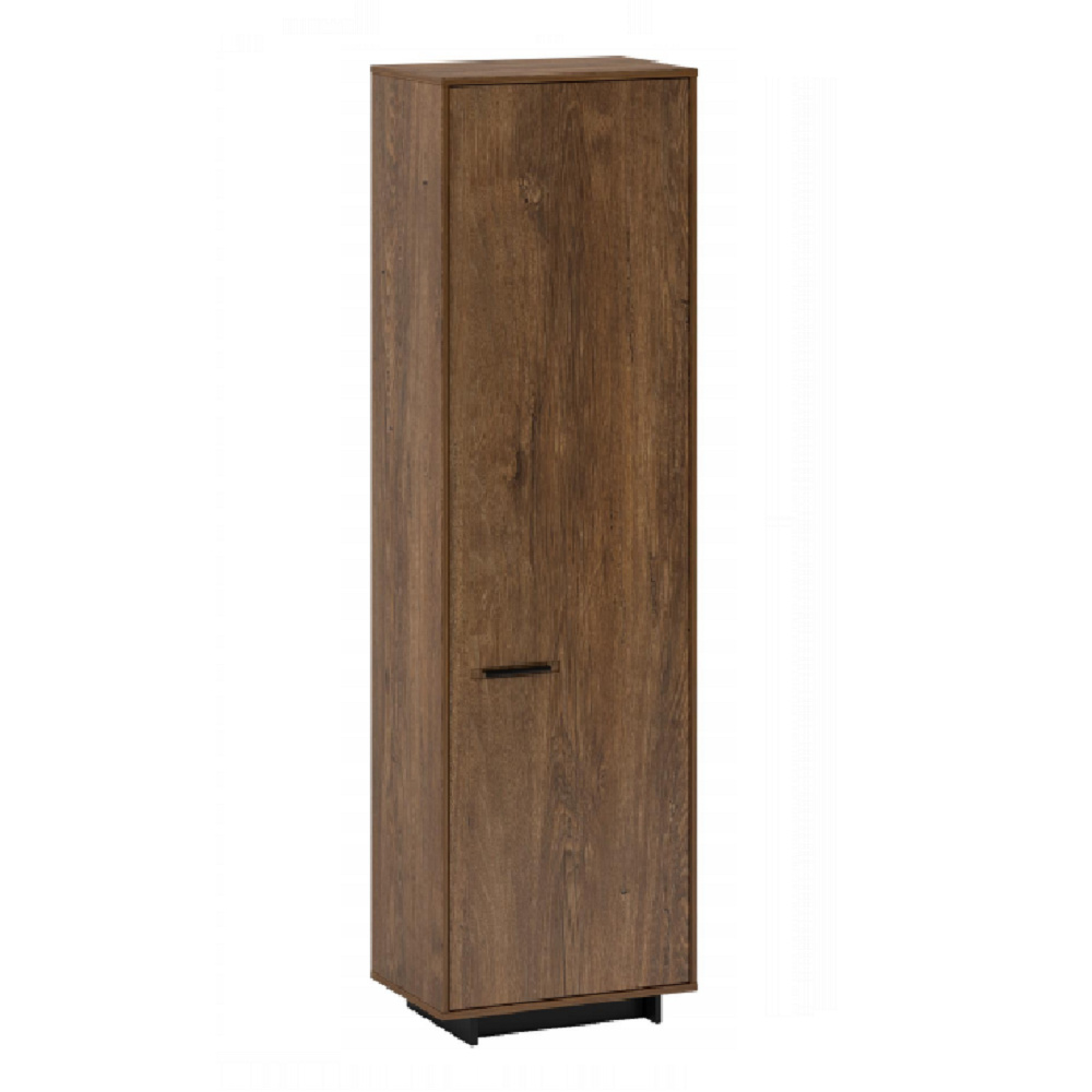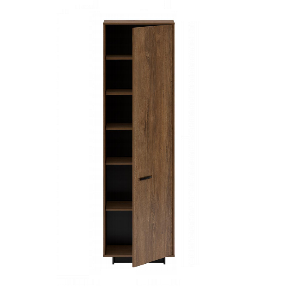 Materiál: DTD laminovaná / MDF fóliovaná Barva: dub bolzano / černá Rozměry (ŠxHxV): 58,9x38x201,2 cm Tloušťka materiálu: 16 mm jednodveřová skříňka pět polic levé provedení na podstavci Výška spodního prostoru od podlahy: 5 cm kovová úchytka originální design Krásná kresba dřeva Do tradičního i moderního interiéru Do obývacího pokoje, pracovny i studentského pokoje Dodávána v demontu