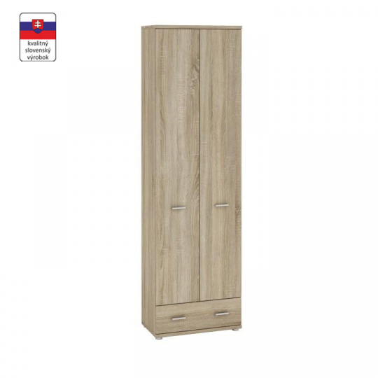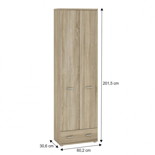 Skříň Typ A komponent z předsíňové sestavy MARIO NEW, Materiál DTD laminovaná, Barevné provedení: dub sonoma. Rozměry: (ŠxVxH): 60,2x201,5x30,6 cm. Tloušťka materiálu: 16/22 mm Dvířka mají hladké zakončení.