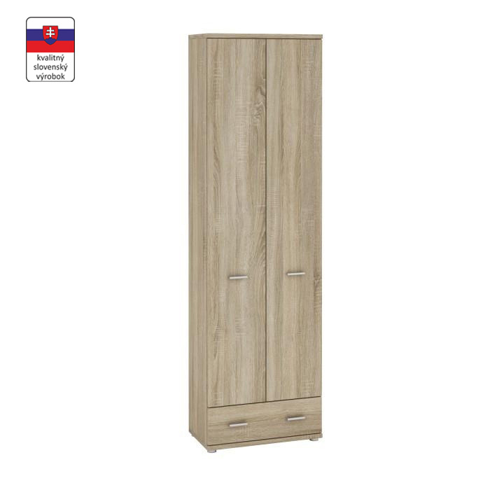 Skříň Typ A komponent z předsíňové sestavy MARIO NEW, Materiál DTD laminovaná, Barevné provedení: dub sonoma. Rozměry: (ŠxVxH): 60,2x201,5x30,6 cm. Tloušťka materiálu: 16/22 mm Dvířka mají hladké zakončení.