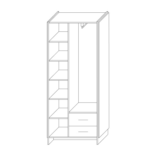 Materiál: DTD laminovaná/ABS hrany Barva: dub wotan/černá Rozměry (ŠxHxV): 82x45x192,5 cm Tloušťka materiálu: 1,6 cm Kovové úchytky Barva úchytek: černá Dvoudveřová Policová část Nosnost police: 5 kg Výsuvný věšák Nosnost výsuvného ramínka: 3 kg Šuplík Nosnost šuplíku: 5 kg Výška šuplíku: 19,6 cm Dvojitá laminovaná DTD Plastové nožičky Moderní design Doporučujeme připevnit ke stěně Dodáváno v demontu