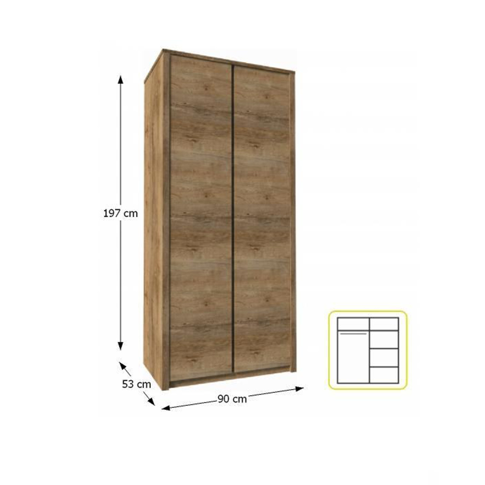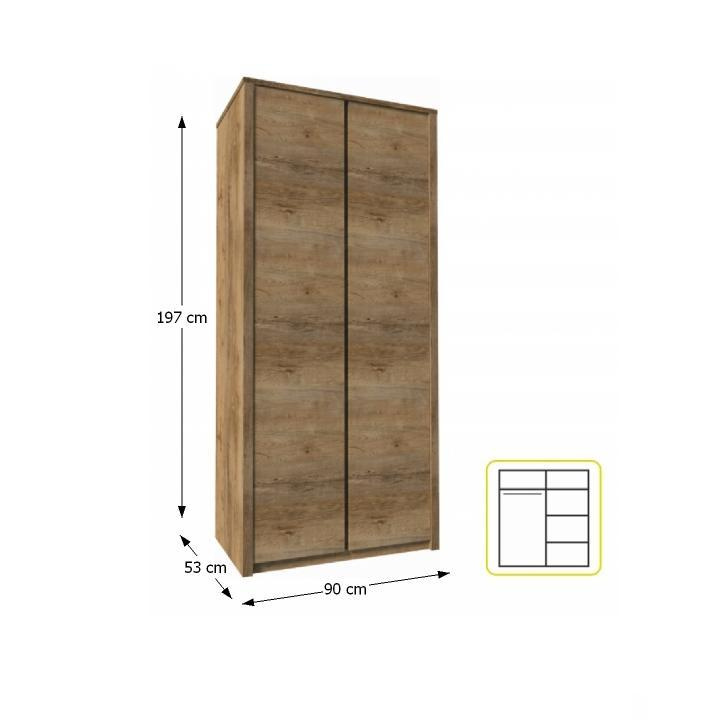 Materiál: DTD laminovaná, ABS hrany, barevné provedení: dub lefkas tmavý. Rozměry ŠxHxV: 90x53x197 cm. Dodávané v demontu.