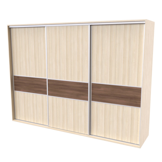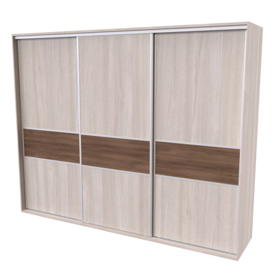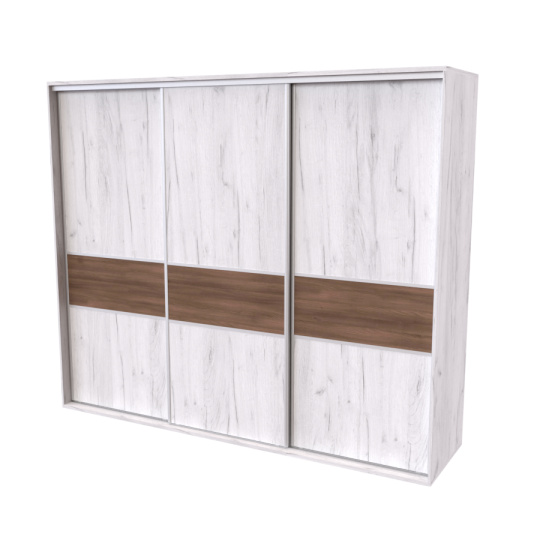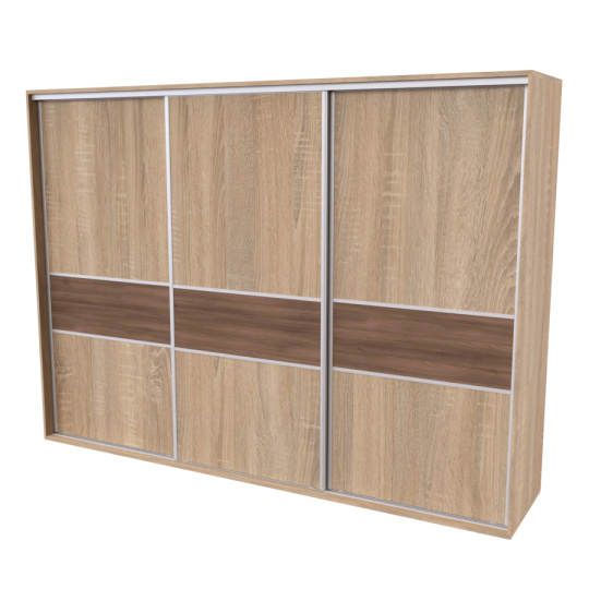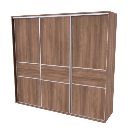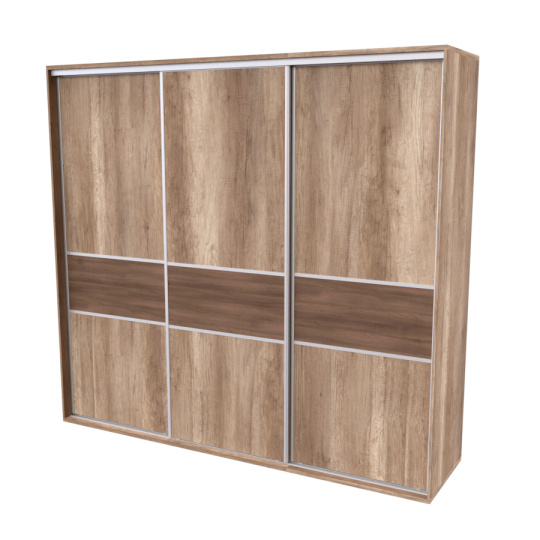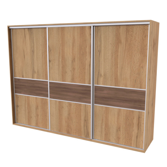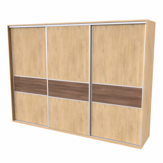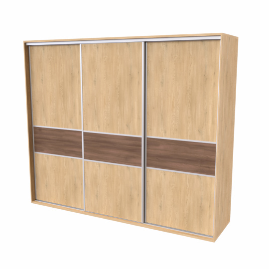 Řada skříní FLEXI 3 se vyznačuje svojí nadstandartní velikostí a úsporou místa díky posuvným dveřím. Snadné otvírání pomocí alu profilu s tlumícím kartáčem zaručuje tichý přístup nejen z levé a pravé strany (získáváte přístup i z prostřed skříně). Není tak potřeba úchytek. Skříně FLEXI nabízí možnost doplnění o zrcadlo, jenž opticky rozšíří Vaši ložnici, či o moderní kombinaci skla nebo druhého dekoru. Získáváte nespočet možností, jak skříň FLEXI zkombinovat, aby odpovídala co nejvíce Vašim představám. Vyrobeno z lamina o sílem 18/25 mm. Výběr z několika akčních dekorů. Kvalitní kování a spojovací materiál je bez použití plastových součástek, vyjma ochranných krytek. Výškově nastavitelné nohy pro dokonalé vyrovnání nepoškozují podlahu. Dvě varianty vnitřního uspořádání. Skříň je z výroby připravena na obě varianty, rozložení si volíte až při montáži. Hloubka skříní je 65 cm, možnost dveří s tlumením a dotahem. Praktické a efektní ABS hrany.