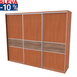 Řada skříní FLEXI 3 se vyznačuje svojí nadstandartní velikostí a úsporou místa díky posuvným dveřím. Snadné otvírání pomocí alu profilu s tlumícím kartáčem zaručuje tichý přístup nejen z levé a pravé strany (získáváte přístup i z prostřed skříně). Není tak potřeba úchytek. Skříně FLEXI nabízí možnost doplnění o zrcadlo, jenž opticky rozšíří Vaši ložnici, či o moderní kombinaci skla nebo druhého dekoru. Získáváte nespočet možností, jak skříň FLEXI zkombinovat, aby odpovídala co nejvíce Vašim představám. Vyrobeno z lamina o sílem 18/25 mm. Výběr z několika akčních dekorů. Kvalitní kování a spojovací materiál je bez použití plastových součástek, vyjma ochranných krytek. Výškově nastavitelné nohy pro dokonalé vyrovnání nepoškozují podlahu. Dvě varianty vnitřního uspořádání. Skříň je z výroby připravena na obě varianty, rozložení si volíte až při montáži. Hloubka skříní je 65 cm, možnost dveří s tlumením a dotahem. Praktické a efektní ABS hrany.