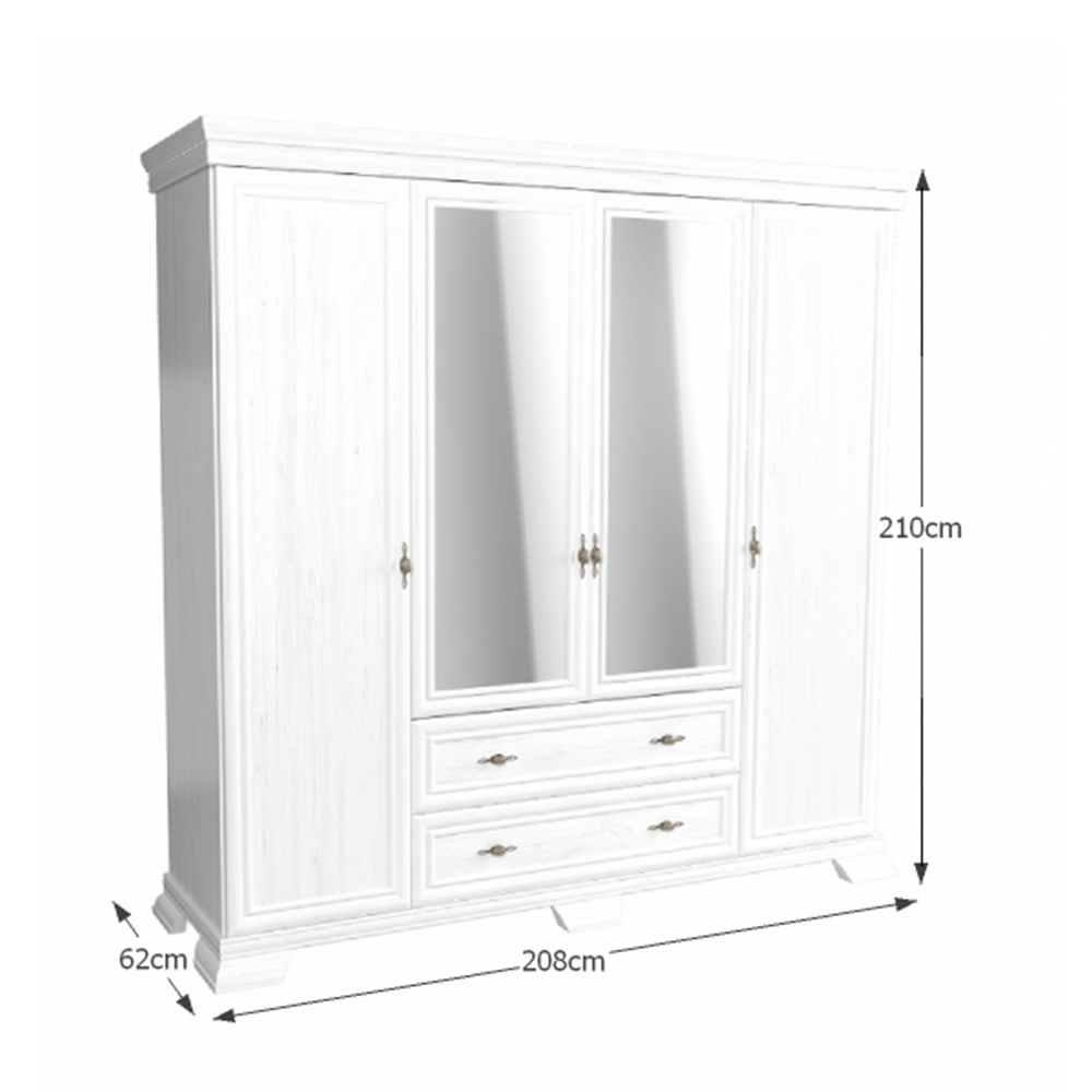 Skříň KS3 KORA. Barevné provedení sosna andersen. Materiál laminovaná DTD, MDF, kov, sklo. Rozměry (ŠxHxV): 208x62x210 cm Tloušťka materiálu korpus: 15 mm Tloušťka materiálu vrchní desky: 22 mm Tloušťka materiálu dolní desky: 22 mm Výška spodního prostoru od podlahy: 10,5 cm