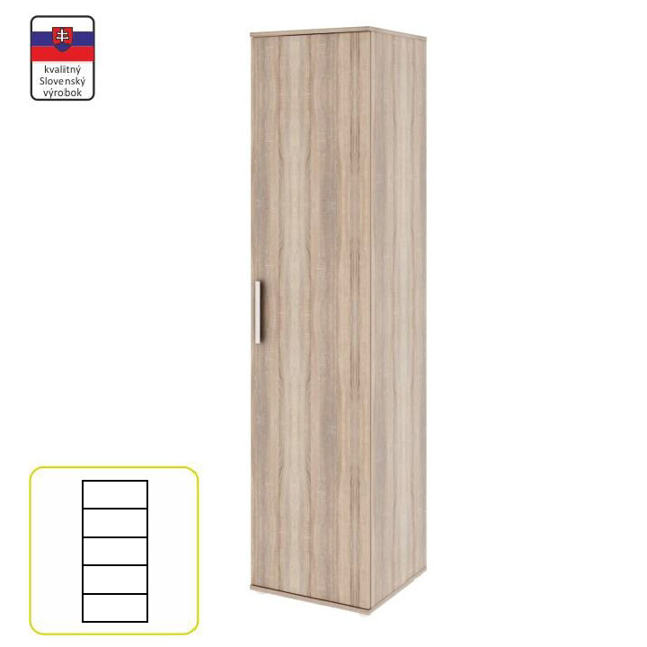 Skříň INVITA TYP 1 Materiál: DTD laminovaná Provedení: dub sonoma Rozměry (ŠxHxV): 45,8x60x200 cm Tloušťka materiálu: 16 mm jednodveřová Kvalitní slovenský výrobek Dodávané v demontu Hmotnost: 55.5kg