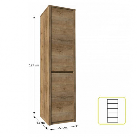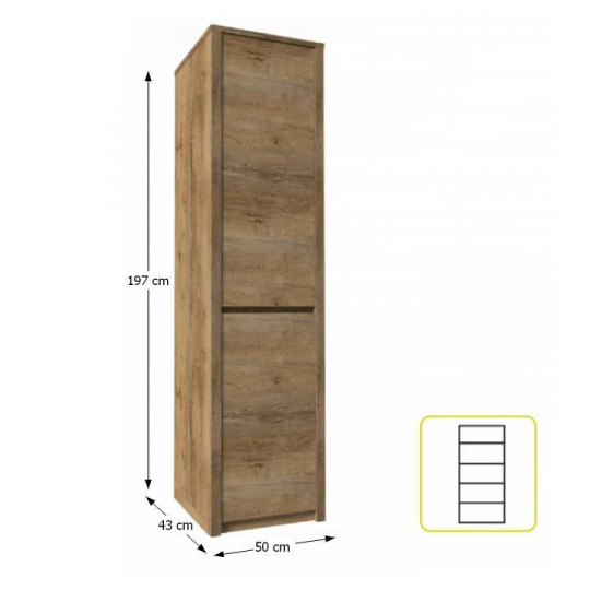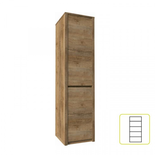 Skříň S1D, MONTANA Materiál: DTD laminovaná, ABS hrany Barevné provedení: dub lefkas tmavý Rozměry (ŠxHxV): 50x43x197 cm Dodávané v demontu.