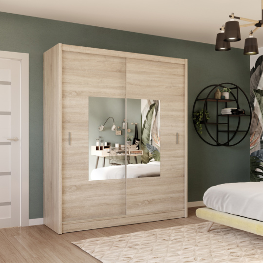Materiál: DTD laminovaná/ABS hrany/lišty MDF fóliovaná/sklo Barva: dub sonoma Rozměry (ŠxHxV): 203x61x215 cm Tloušťka materiálu DTD: 1,6 cm S plastovými úchytkami Barva úchytek: stříbrná Tvar úchytek: obdélník Se zrcadlem Dvoudveřová S posuvnými dveřmi Věšáková tyč Policová část Nosnost police: 5 kg Nosnost věšáku: 5 kg Moderní design Není vhodné zatěžovat vrchní desku Dovávaná v demontu