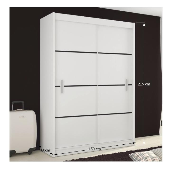 Skříň s posuvnými dveřmi, bílá/černá, MERINA 150