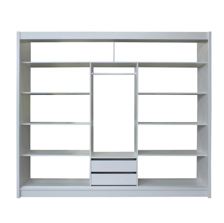 Skříň s dvěma posuvnými dveřmi Merina Barevné provedení: bílá / černá Materiál: DTD laminovaná/MDF fóliovaná, Rozměry (ŠxHxV): 250x60x215 cm Tloušťka materiálu: 16 mm Nosnost šuplíku: 3 kg Nosnost police: 5 kg Nosnost věšáku: 5 kg Není vhodné zatěžovat vrchní desku Dodávána v demontu