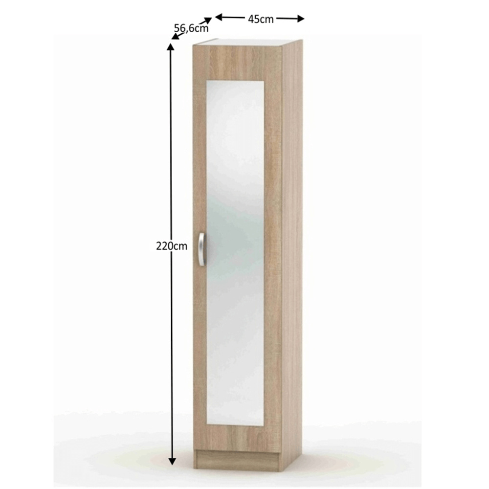 Skříň se zrcadlem, BETTY 2 Materiál: DTD laminovaná Barva: dub sonoma Rozměry (ŠxHxV): 45x56,6x220 cm Tloušťka materiálu korpus: 16 mm Dodávané v demontu.