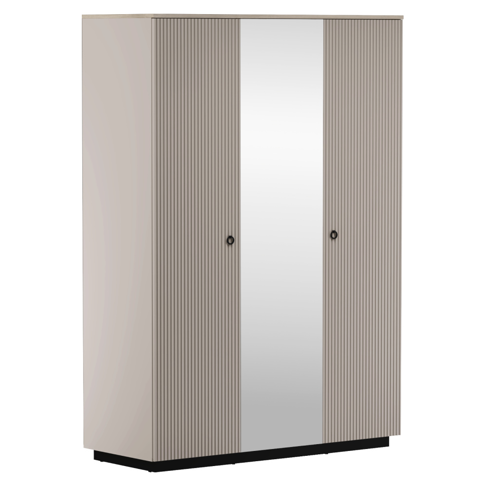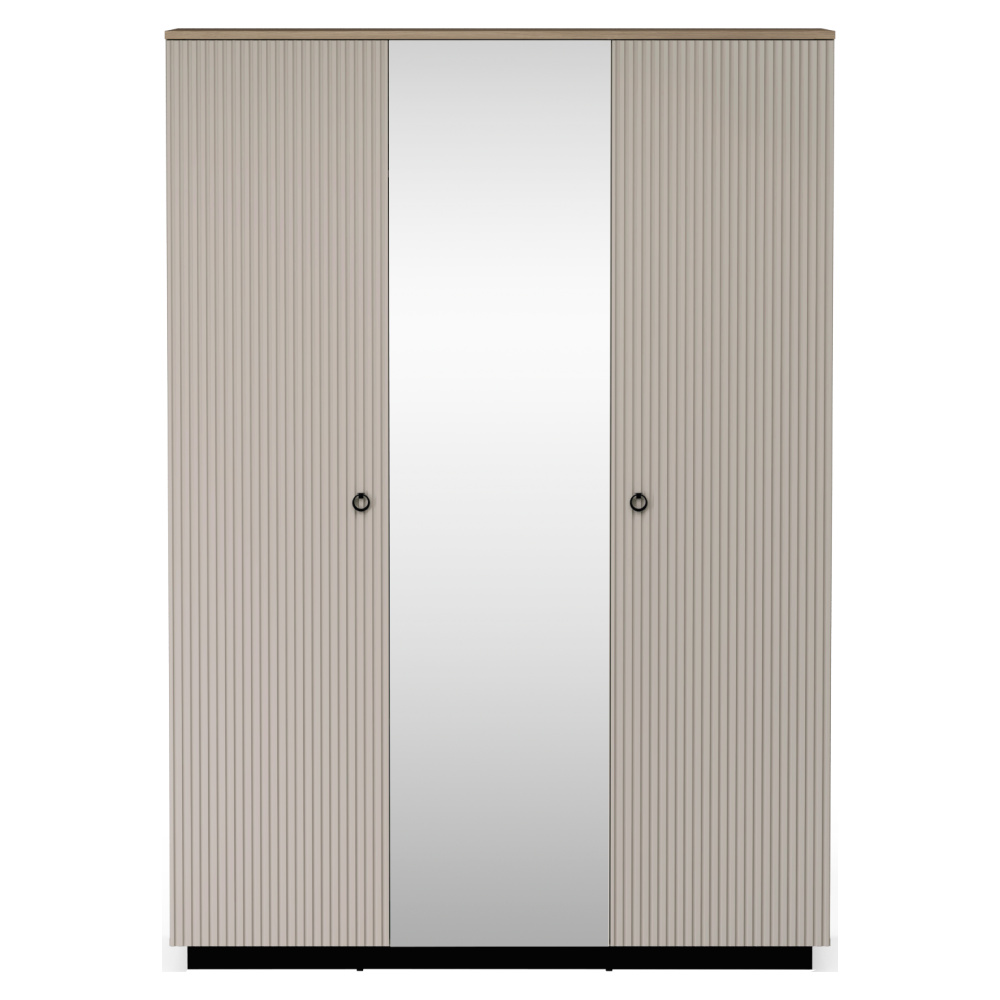 Materiál: laminovaná DTD/fóliovaná MDF/sklo Barva: šedohnědá Taupe/dub silverjack Rozměry (ŠxHxV): 153,5x60x218 cm Tloušťka materiálu DTD: 1,6-1,8 cm Tloušťka materiálu MDF: 1,9 cm Třídveřová Se zrcadlem Policová Věšáková tyč Dvě zásuvky Nosnost police: 5 kg Nosnost zásuvky: 3 kg S úchytkami Materiál úchytek: kov Barva úchytek: matná černá Na nožičkách Výška nožiček: 12 cm Materiál nožiček: plast Barva nožiček: matná černá Dekorativní frézovaná dvířka Moderní design Doporučujeme připevnit ke zdi Dodáváno v demontu