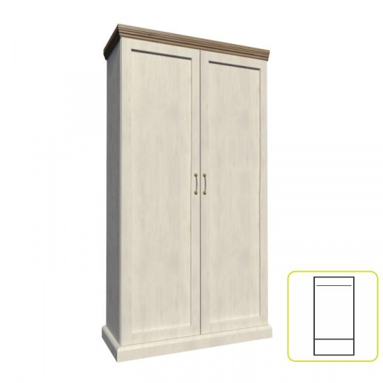 Věšáková skříň S2D s jednou policí z elegantního sektorového systému Royal v provensálském stylu. Vhodná na zařízení obývacích pokojů či ložnic. Materiál: korpus DTD laminovaná + ozdobné lišty, kovové úchytky Barevné provedení: sosna skandinávská / dub divoký Rozměry ŠxHxV: 97x49x187 cm Tloušťka materiálu korpus: 15 mm Tloušťka materiálu vrchní desky: 22 mm Dodávané v demontu.