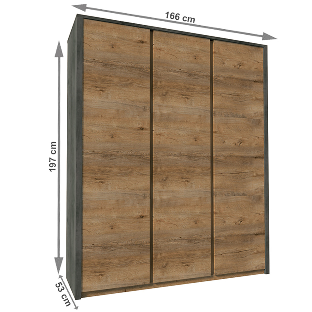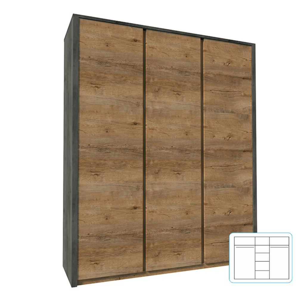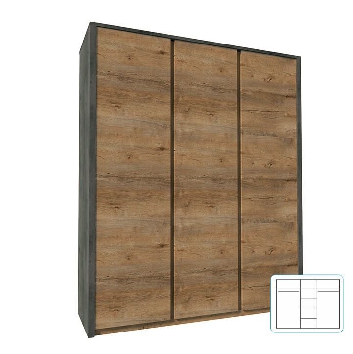 Skříň třídveřová, dub lefkas tmavý/smooth šedý, MONTANA S3D